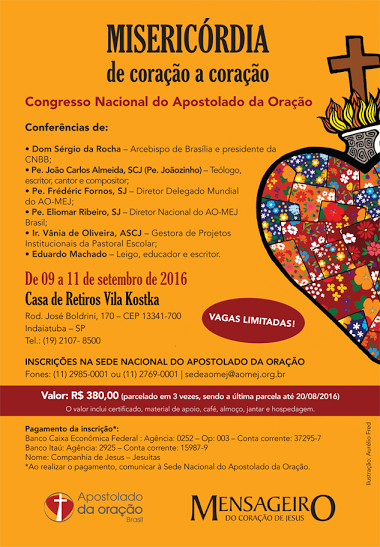As inscrições para o Congresso Nacional do Apostolado da Oração estão abertas até o dia 20 de agosto. Iinformações: