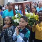 No trajeto da procissão, além do carro com a imagem da padroeira, andores ornamentados pelas comunidades paroquiais. O momento foi de fé e alegria.
