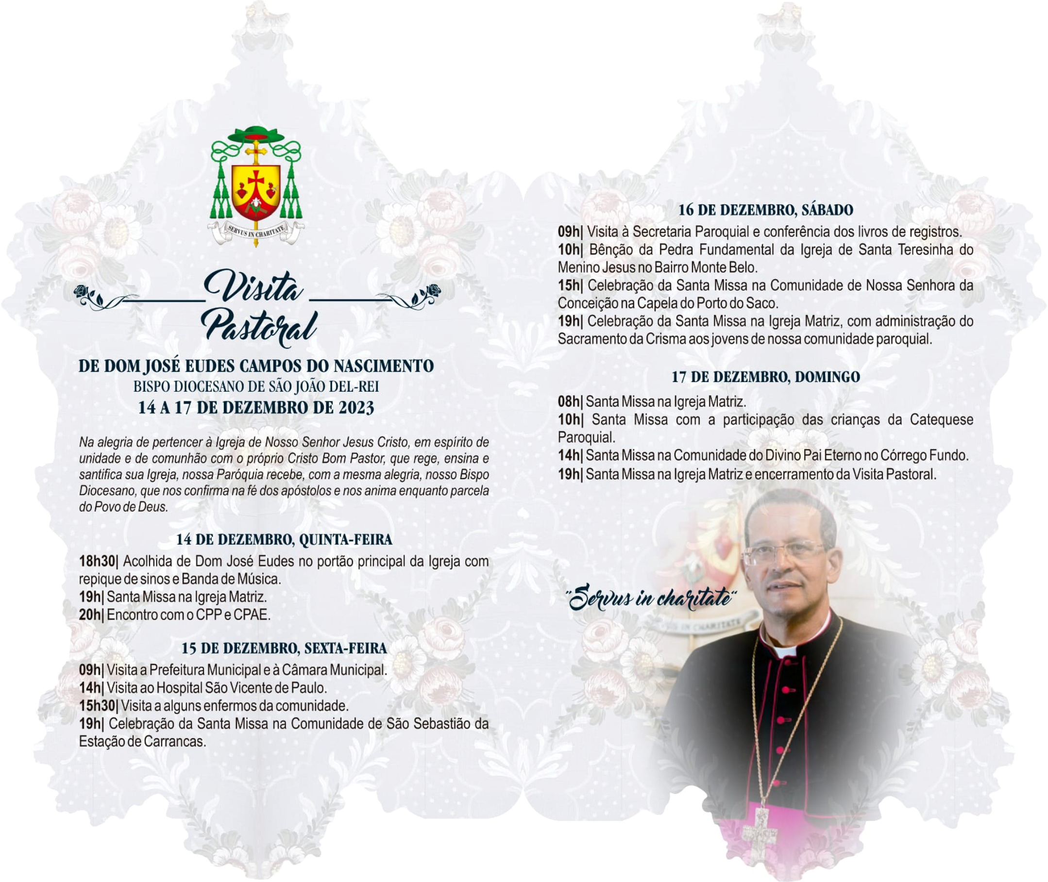 Pensando assim, o bispo da Diocese de São João del-Rei, Dom José Eudes Campos do Nascimento, inicia nesta quinta-feira, 14, mais uma Visita Pastoral em 2023, dessa vez, na Paróquia Nossa Senhora da Conceição, em Carrancas.