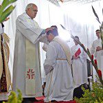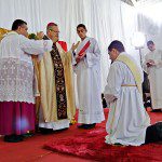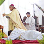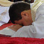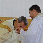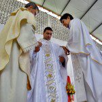 O rito da missa seguiu-se normalmente, até que, antes do momento do ofertório, foi realizado o rito da ordenação sacerdotal. Em um gesto de humildade, o jovem se deitou no chão, demonstrando que está disposto ao despojamento e à humildade.