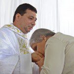 Após o rito, o novo sacerdote recebeu a bênção e os cumprimentos dos padres, amigos e familiares.