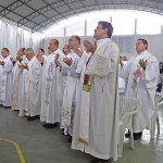 Ao som da Sociedade Musical São Sebastião e em meio a uma quadra lotada de conterrâneos e visitantes das cidades circunvizinhas, o evento teve inicio com a entrada de padres, diáconos e seminaristas, para concelebrar com Dom Célio de Oliveira Goulart, bispo diocesano, o cerimonial.