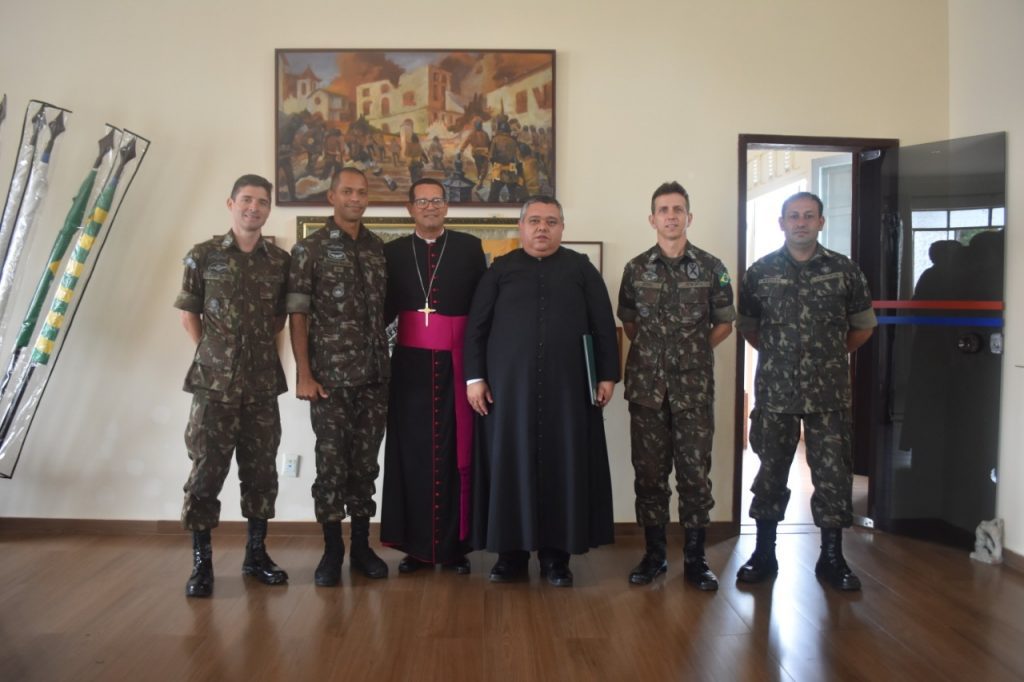 Na manhã desta quinta-feira, 30, o bispo diocesano de São João del-Rei, Dom José Eudes Nascimento, juntamento com o vigário-geral, padre Geraldo Magela da Silva, visitaram o 11° Batalhão de Infantaria de Montanha para dar boas vindas ao novo comandante, tenente-coronel Sérgio Ricardo Reis Matos, que assumiu o comando no dia 09 de Janeiro. Houve trocas de presentes e muita conversa.