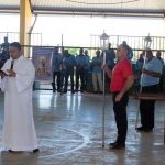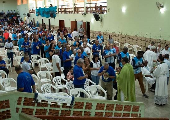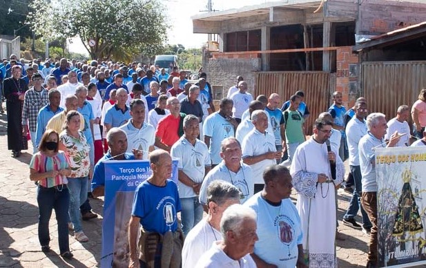 A concentração dos homens se deu na quadra poliesportiva, na Rua Lavras, seguida da pregação do Padre Ricardo Rodolfo Silva, da Canção Nova. Logo após, foi dado início a procissão, com o andor de Nossa Senhora Aparecida, até o Pavilhão Sagrada Família. Durante o percurso, os fiéis rezaram e meditaram a oração do Santo Terço.