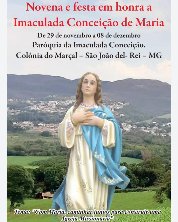 São muitos os fieis que, a partir desta terça-feira, 29, vão iniciar novenários e preces aos pés da imagem da Virgem Maria. Padroeira de seis Paróquias da Diocese de São João del-Rei, Nossa Senhora da Conceição é um título mariano que acarreta práticas devocionais e homenagens. Uma forma particular de voltar o olhar dos fiéis para contemplar a Maria Santíssima e se consagrar aos cuidados da Mãe de Jesus.