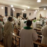 Além do momento mariano, instantes de fé também envolveram os sacerdotes. Conduzido pelos padres Vinícius Campos e Álisson Sacramento, o Momento Penitencial ofereceu uma reflexão para os presbíteros, assim como a “partilha”. Em roda, os sacerdotes conversaram sobre a caminhada sacerdotal.