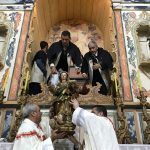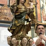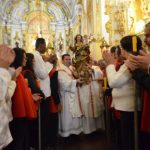 a noite de sexta-feira, 15, foi de festa na cidade de Prados. Com batuques da congada, aplausos e muita oração, centenas de fiéis acolheram a pequena imagem de Nossa Senhora do Rosário, furtada em setembro de 1980, que retorna para a comunidade. Missa e procissão marcaram a programação festiva.