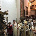 Após a missa os fiéis seguiram em procissão até a Igreja de Nossa Senhora do Rosário, acompanhados do grupo de congado da cidade de Coronel Xavier Chaves. No interior do templo houve homenagens, introdução da imagem no altar mor e benção.