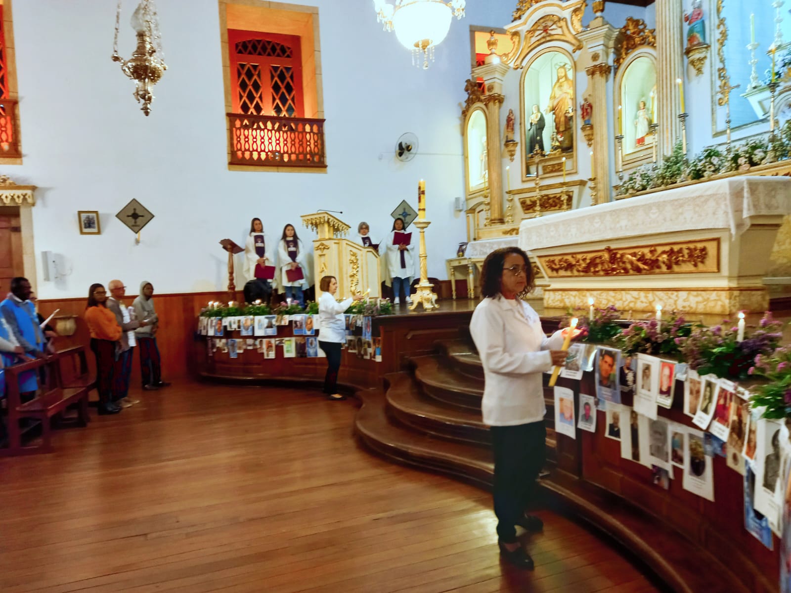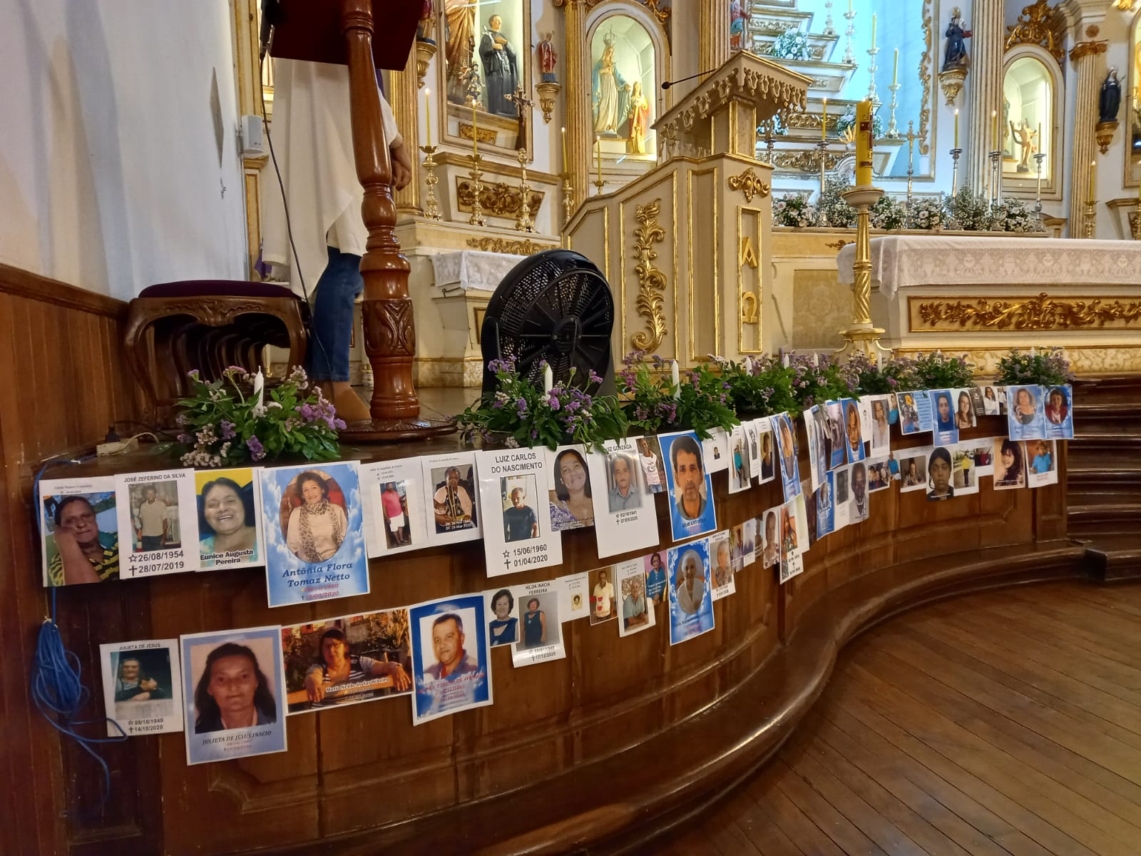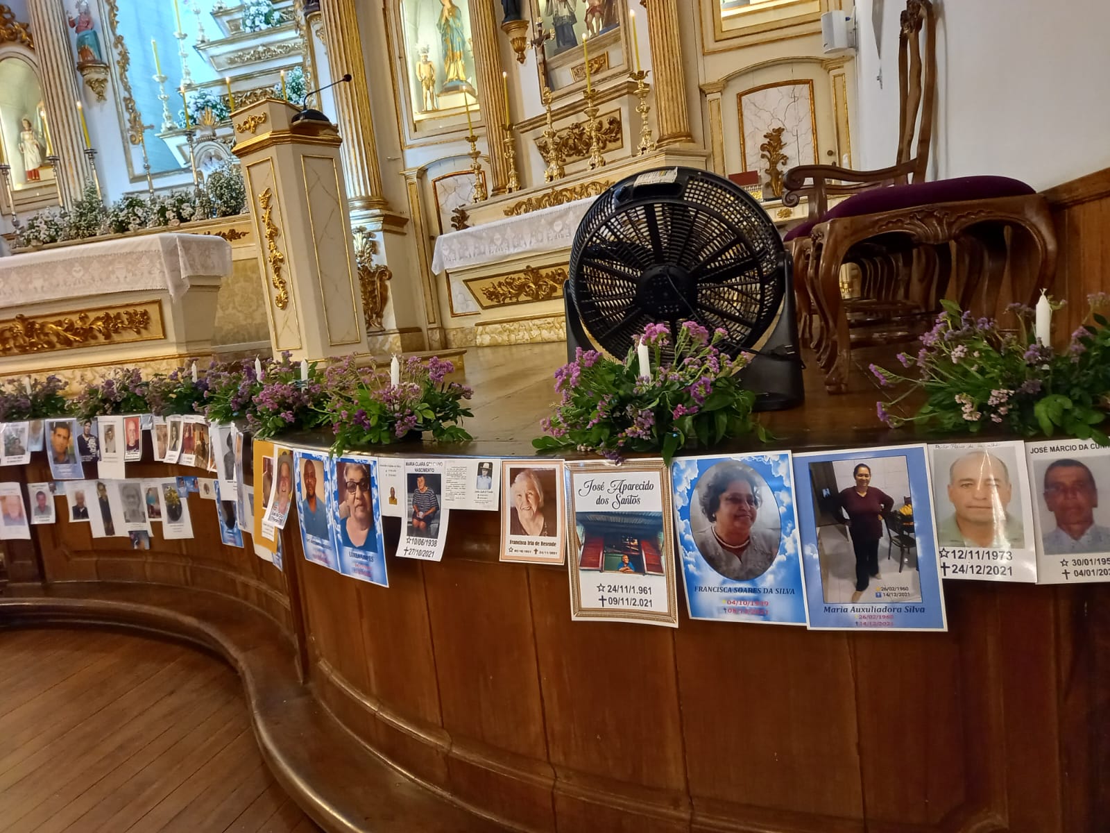 Durante a missa das 19 horas, no Santuário, a celebração recebeu intenções especiais, na memória de todas as pessoas falecidas durante o tempo da pandemia. Cada pessoa foi representada, ao pé do altar, por meio de fotografias, carinhosamente preparadas por seus familiares.