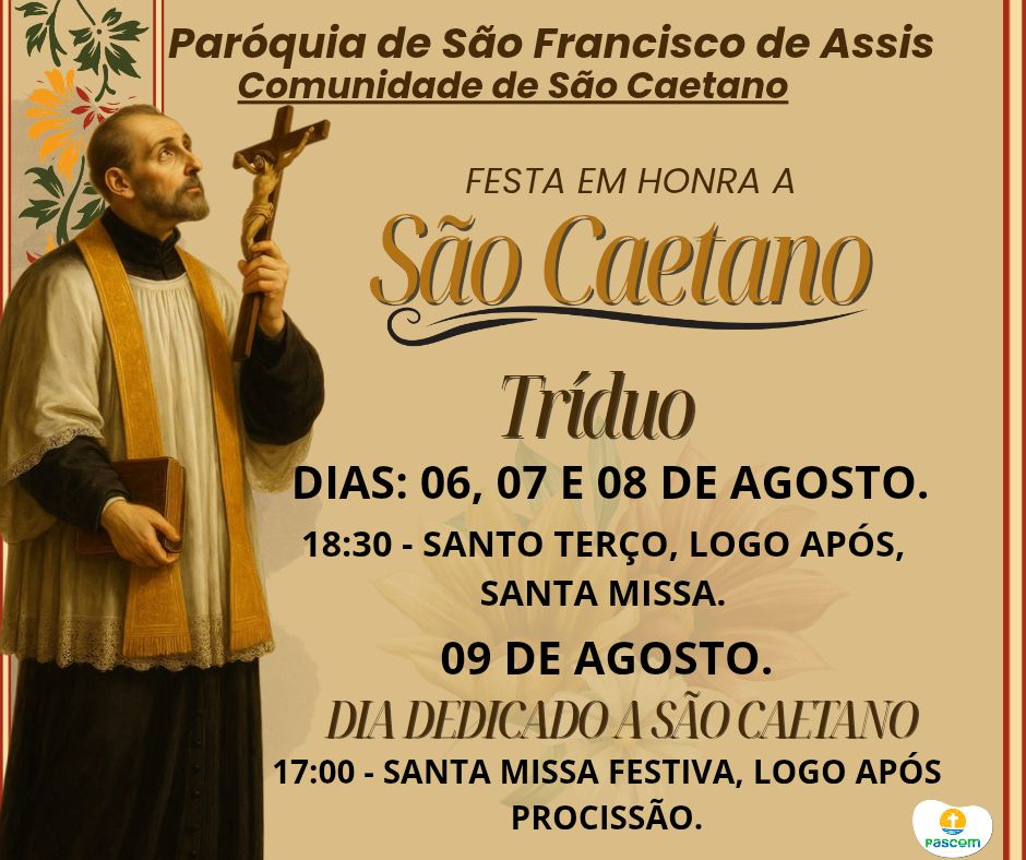 São Caetano é um santo de nacionalidade italiana festejado no dia 7 de agosto. Fundador da ordem religiosa dos Teatinos e patrono do trabalho, ele é invocado contra a fome e o desemprego. Canonizado em 1671 pelo Papa Clemente X, trabalhou no processo da contra reforma e destacou-se pela caridade, fundando um hospital.