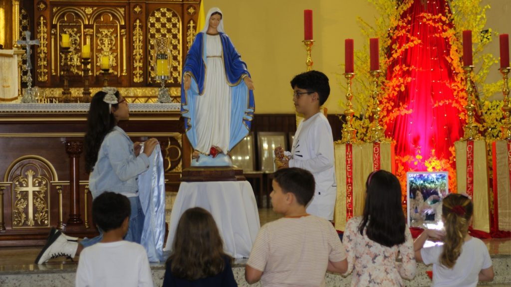 Musicas como “Treze de Maio”, “Contigo Maria” e “Ave Maria”. O evento ainda contou com uma coroação feita pelas crianças da comunidade.