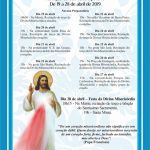 Na programação, missas, procissões, carreatas, danças e adorações. Tudo acompanhado do grande ícone de Jesus Misericordioso. “Serão momento de graças derramadas na vida de cada um de nós. Que, envolvidos pela sua misericórdia, possamos nos colocar sempre a disposição de Cristo e fazermos a sua vontade”, expressa a cabeleireira Maria do Carmo Ribeiro.