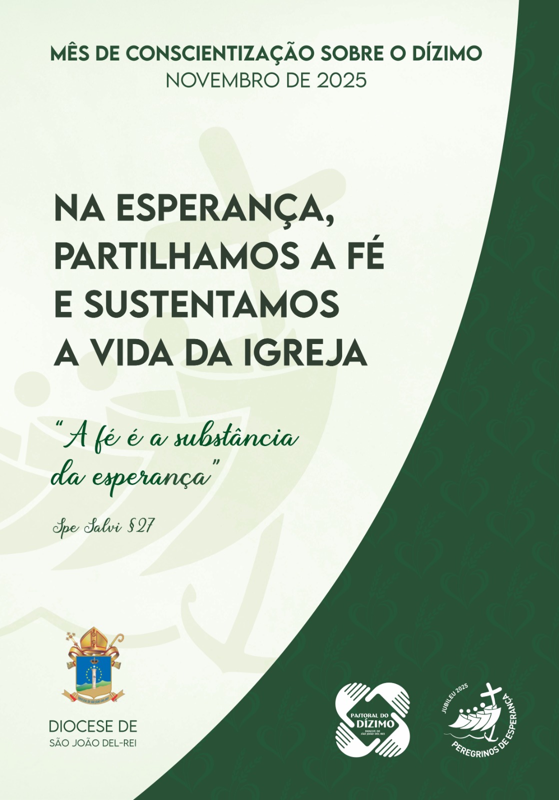 Em várias dioceses do Brasil o mês de novembro é dedicado, de forma especial, ao Dízimo. Em São João del-Rei não é diferente. A campanha de mobilização conta a distribuição de mensagens sobre a importância da contribuição na vida do cristão e busca convidar os membros da comunidade para entenderem o dízimo como retribuição ao cuidado e amor de Deus e na ação concreta se ser Igreja. Este ano a Campanha tem como tema “Na Esperança, partilhamos a fé e sustentamos a vida da Igreja”.