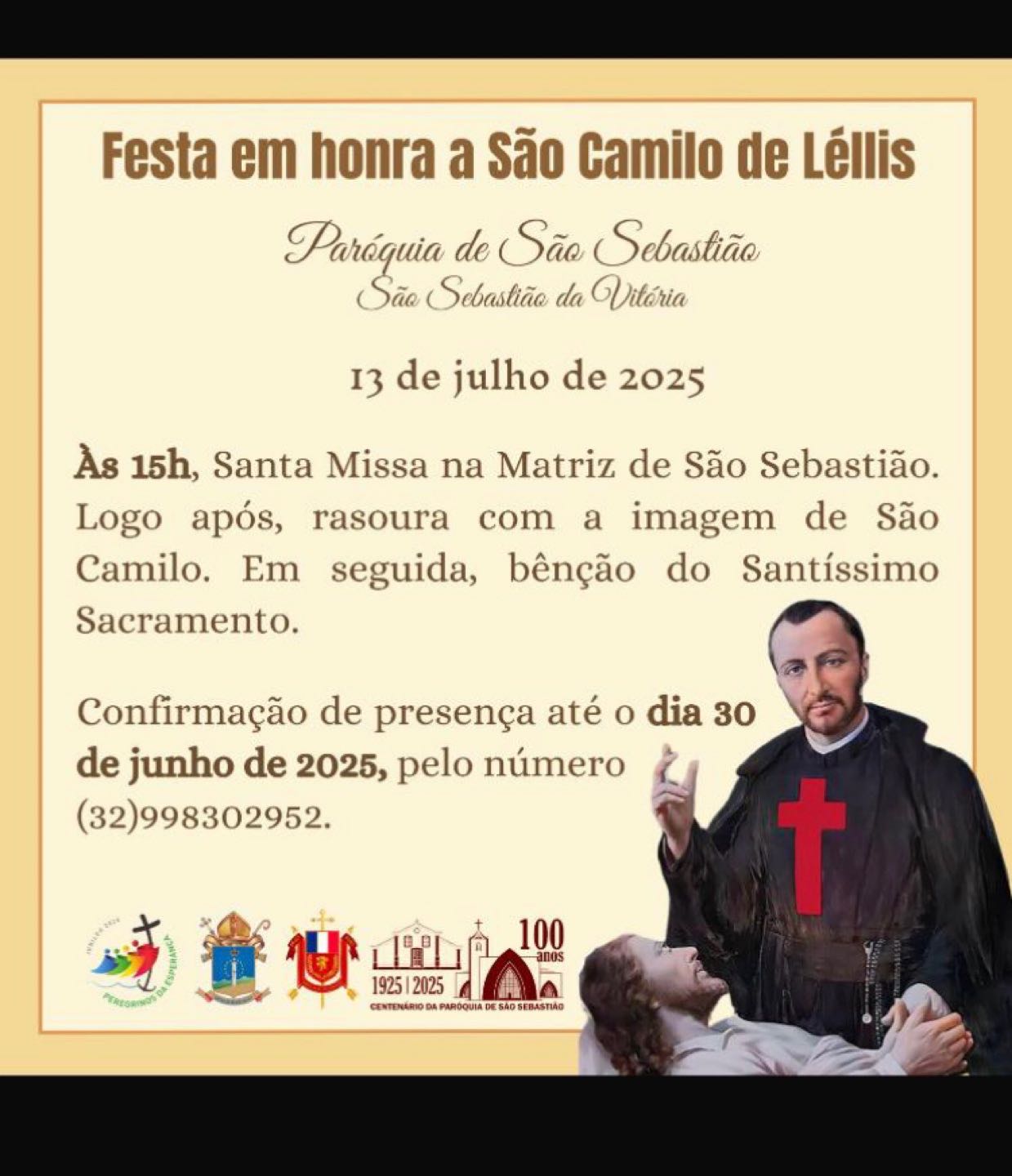A programação, este ano, vai ser celebrada na Paróquia São Sebastião, no Distrito de São Sebastião da Vitória, e vai contar com missa, procissão e Bênção do Santíssimo Sacramento. “São Camilo de Lellis, é padroeiro dos hospitais, médicos, enfermeiros, agentes da Saúde, enfermos e também da Pastoral da Saúde. Esse dia é celebrado em conjunto com a MECE, porque os Ministros e Pastoral da Saúde tem um diretor espiritual em comum da Diocese, que é o padre Rodrigo Coimbra Ladeira. É esperada a presença de todos”, explica Heloisa.