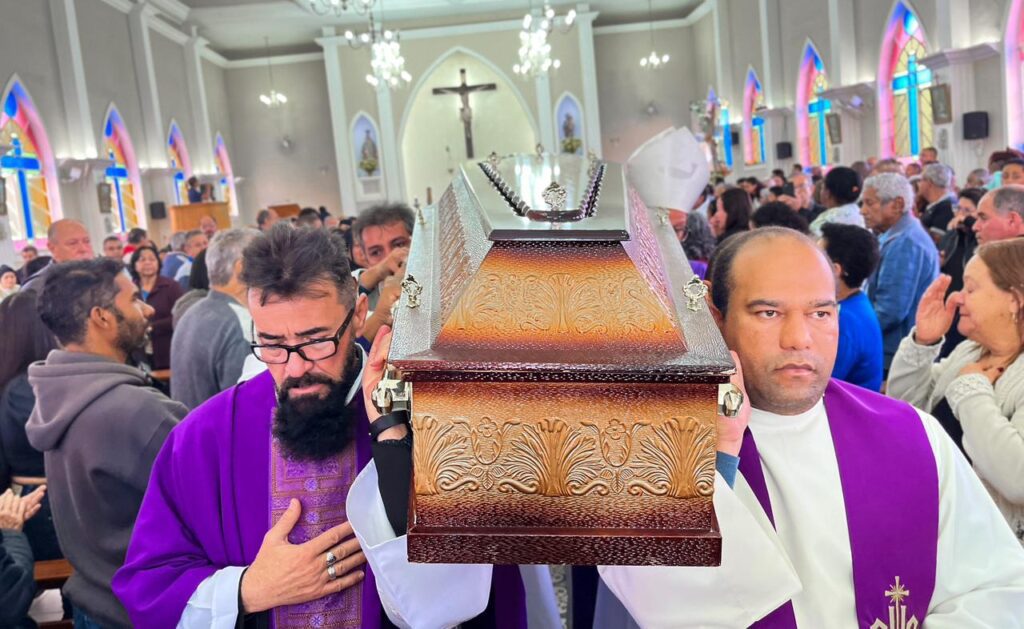 Foi com muita emoção, aplausos e palavras de admiração e carinho que familiares, amigos, fiéis católicos e religiosos se despediram neste sábado, 22, do padre Ilton de Paula Resende. O sacerdote tinha 59 anos.