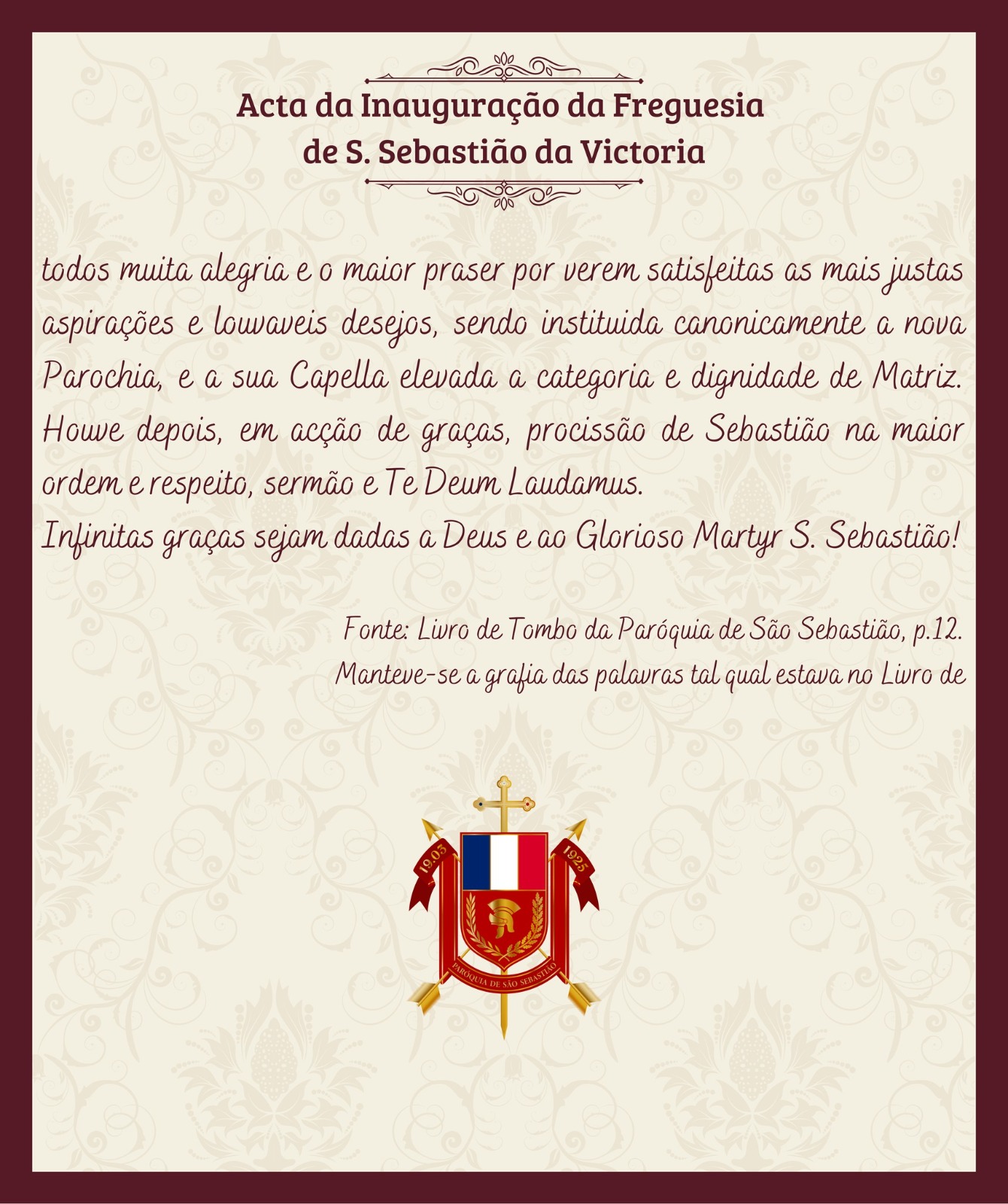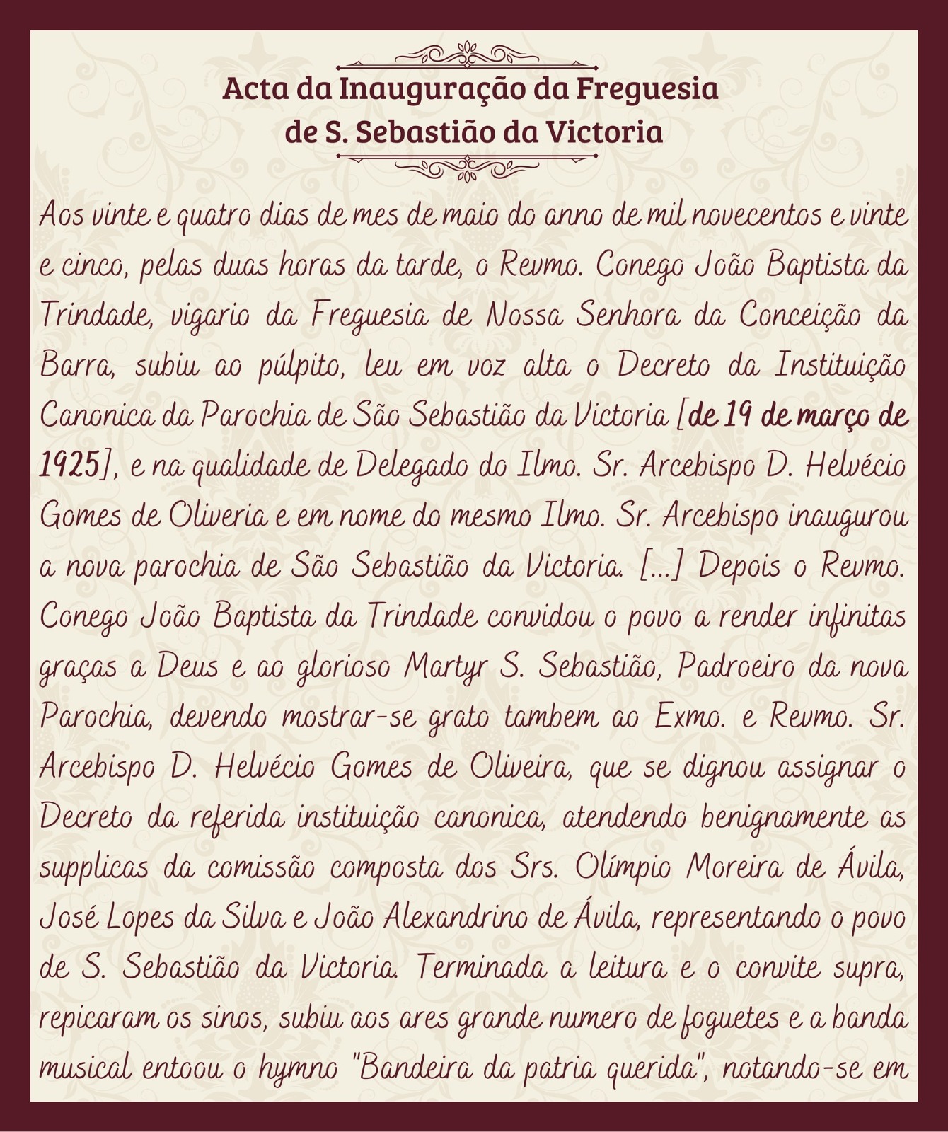 Confira o texto apresentado na Ata de Inauguração:
