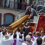 A urna foi depositada no caminhão do Corpo de Bombeiros, iniciando o translado do corpo pela cidade história. No trajeto, homenagens dos moradores da cidade.
