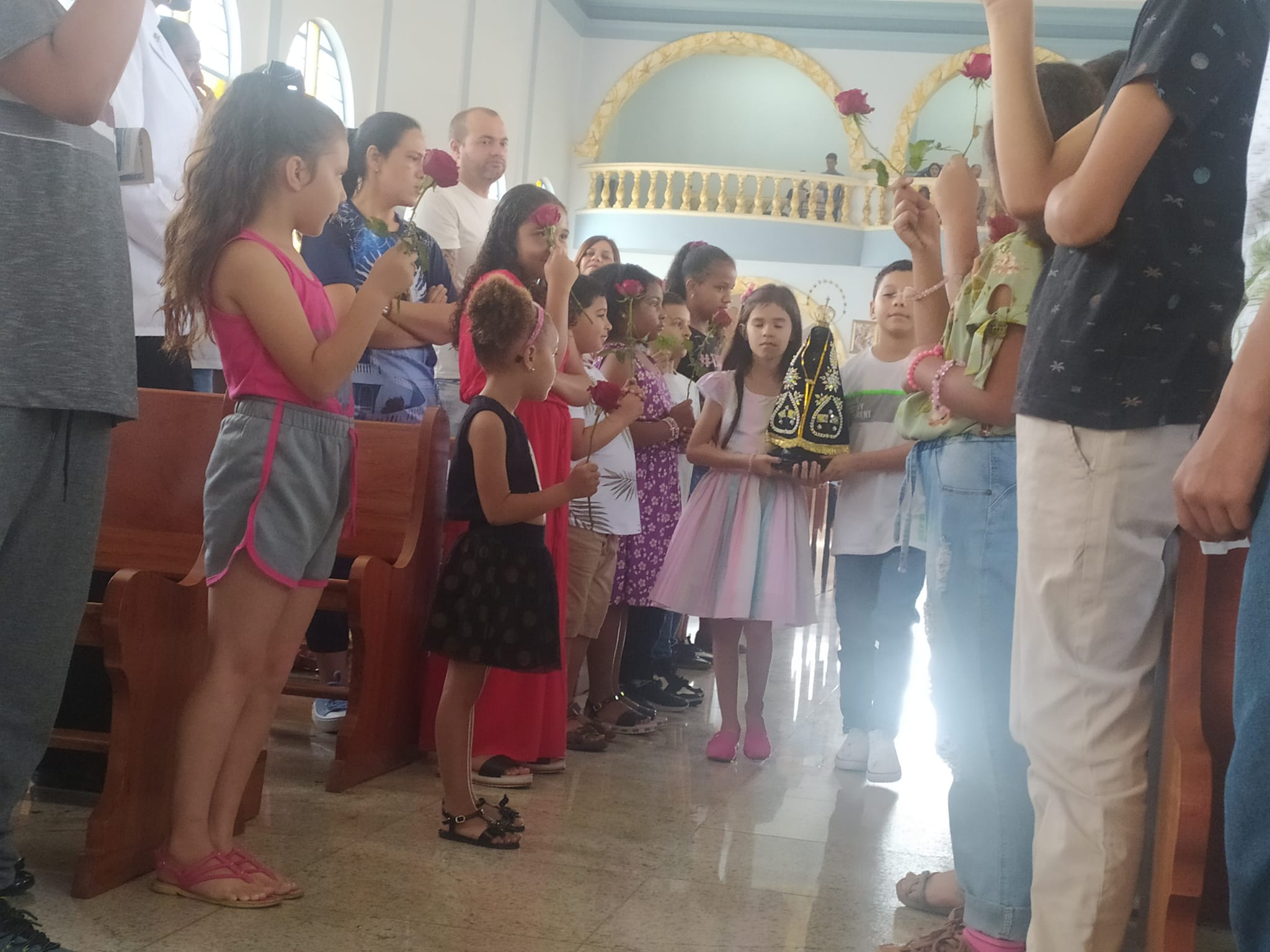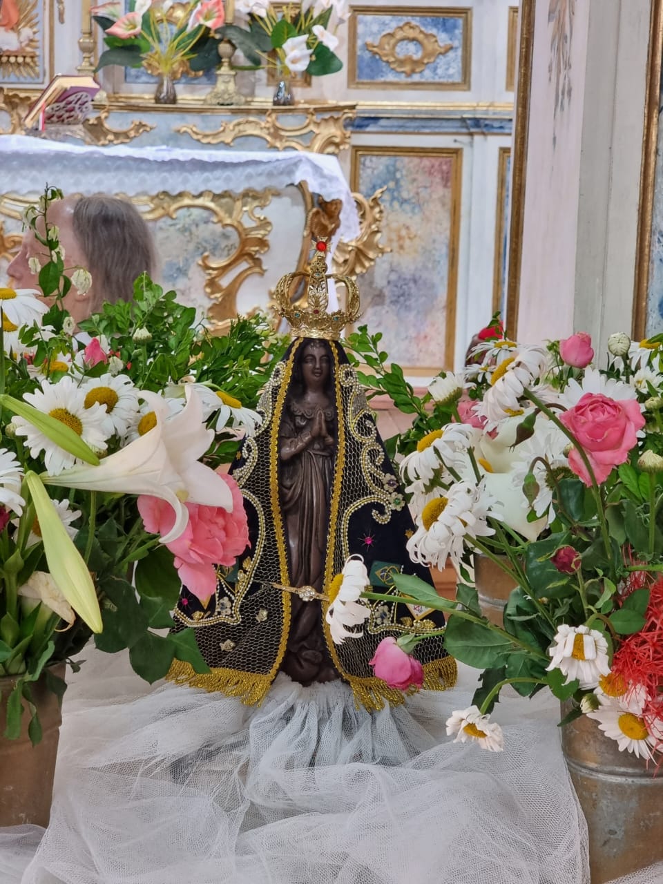 A programação teve início logo cedo e contou com 5 celebrações de missas, caminhada de fé, carreata e procissão. Durante todo o dia a igreja matriz esteve de portas abertas, recebendo visitas e entrelaçando histórias. Alguns fazendo pedidos, outros agradecendo. O terço nas mãos era como uma ‘vestimenta obrigatória’. O artigo religioso reforçava, ainda mais, a conexão do fiel com a Virgem Maria. Um saldo positivo da festa. “A festa foi um momento marcante para toda a comunidade paroquial, principalmente quando escolhemos o tema: Comunhão, participação, missão. Parece, a princípio, três palavras soltas que na verdade fala do objetivo da igreja Sinodal”, explica o sacerdote.