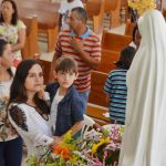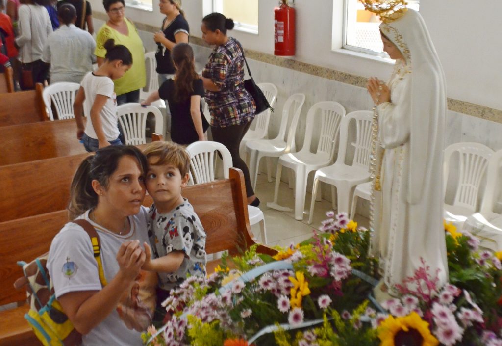 Uma devoção passada de mãe para filho, muitas vezes, desde pequeno. “Ele nasceu prematuro, ficou 12 dias no CTI e teve uma infecção generalizada. No dia de Nossa Senhora de Fátima ele estava entre a vida e a morte. Os médicos já me alertavam as poucas chances dele sobreviver. Mas tive fé e Maria me ajudou. Hoje ele está aqui, saudável. Um consagrado de Nossa Senhora”, relata Maristela Vilas Boas, mães do pequeno Davi de 3 anos.