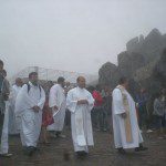 Concentrados em frente à Ermida da Padroeira de Minas, onde fica a Porta da Misericórdia, os peregrinos de São João del-Rei seguiram em caminhada até a Igreja nova das Romarias. Nem a intensa nebrina atrapalhou a caminhada de fé, ato sugerido pelo Papa Francisco em sua Bula de proclamação do Jubileu Extraordinário da Misericórdia, Misericordiae Vultos (O Rosto da Misericórdia).”A peregrinação é um sinal peculiar no Ano Santo, enquanto ícone do caminho que cada pessoa realiza na sua existência. A vida é uma peregrinação e o ser humano é viator, um peregrino que percorre uma estrada até à meta anelada. Também para chegar à Porta Santa”, descreve o pontífice.