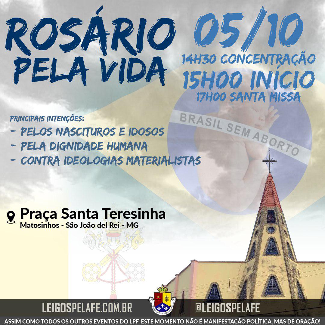 Em ocasião da celebração do dia dos idosos, do nascituro e da dedicação ao Mês do Rosário, o grupo “Leigos pela Fé” vai promover neste sábado, 05, a oração do “Rosário pela vida”, rezando pela dignidade humana e contra ideologias materialistas. O momento oracional vai acontecer à partir das 14h30, na Praça Santa Teresinha, em São João del-Rei, MG. A programação ainda vai contar com a celebração da Santa Missa, na igreja dedicada a santa carmelita, às 17 horas.
