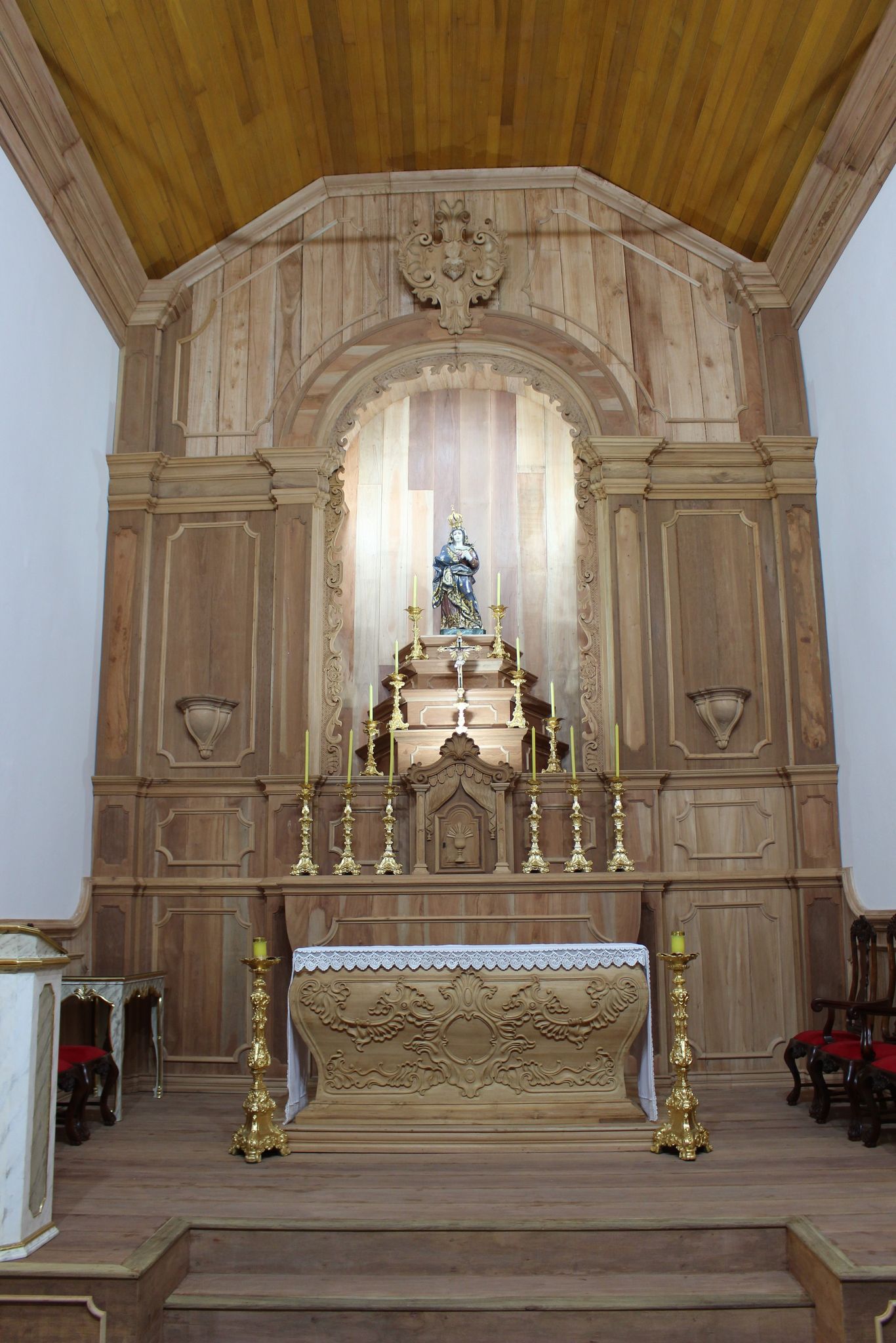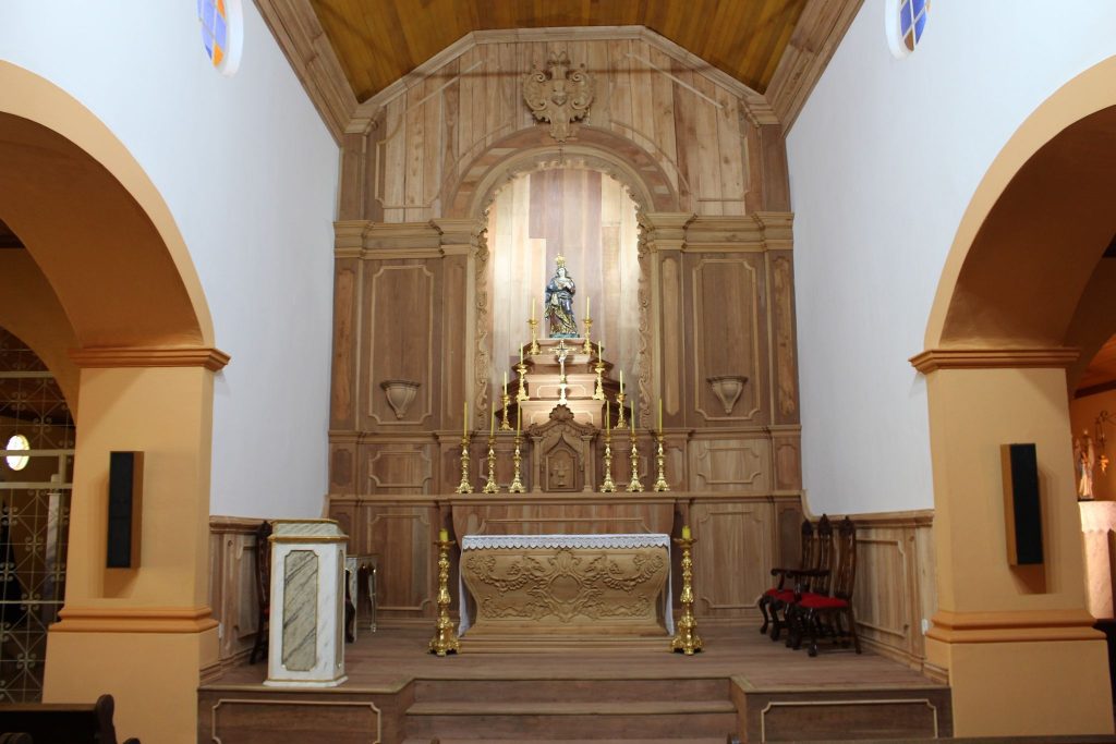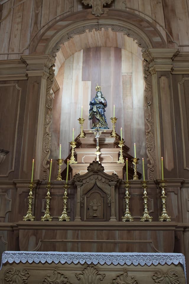 Localizada há 40 km de São João del-Rei, a cidade abriga uma linda igreja no estilo Neoclássico dedicada a padroeira do município. Construída no início do século XX, a igreja veio sofrendo, no decorrer do tempo, diversas intervenções, resultando hoje a perda de parte da arquitetura original. É neste contexto que surgiu, em outubro de 2020, a ideia de valorizar a memória e resgatar a beleza artística através da construção de um novo retábulo. O projeto é uma releitura do original com traços atuais.