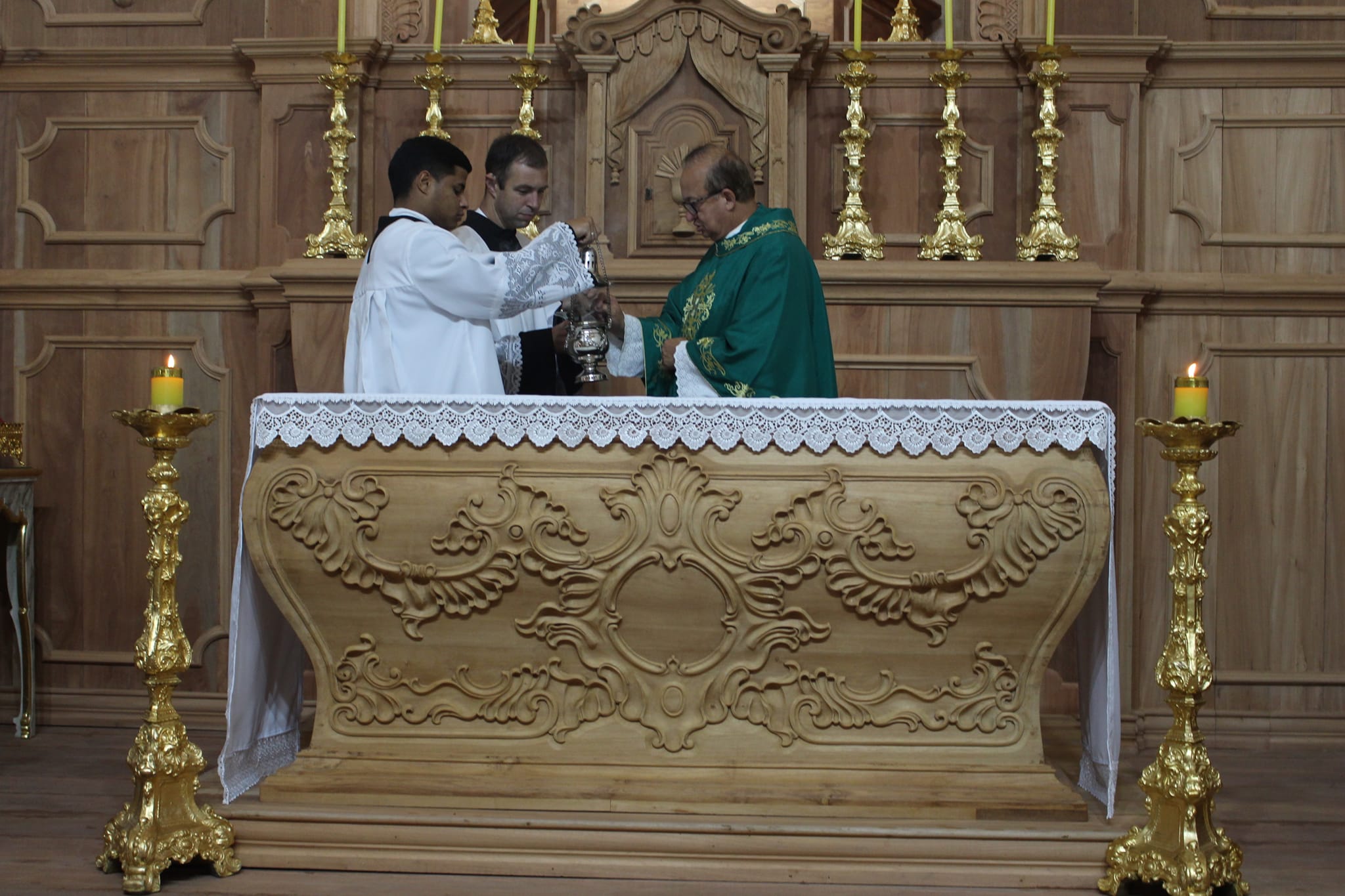 A Matriz de Nossa Senhora das Dores, da cidade de Dores de Campos, ganhou um novo altar, todo entalhado em madeira. Para celebrar com festa a conclusão da primeira parte da obra, uma missa foi presidida, na última semana, junto da comunidade dorense. A obra recorda a cena do Calvário, com a presença da Virgem Dorolosa, Maria Madalena, e o discípulo amado de Jesus, João Evangelista.