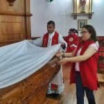 A Cerimônia teve início com as orações e benção das novas aquisições. Entalhado em madeira, remetendo a arte sacra, a obra do artista sãojoanense, Rogério Silva, foi incentivada e aprovada pelo memorável, Dom Célio de Oliveira Goulart. Como explica o idealizador do projeto, padre Admilson.