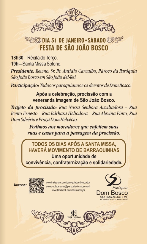 Com o fechamento da Faculdade e do Colégio São João – transformados na Universidade Federal de São João del Rei – a Paróquia continuou dando assistência religiosa ao povo. Nela funcionam a Obra Social Dom Bosco, o Movimento Comunitário Dom Bosco, dois Oratórios (obra social de atendimento à criança e adolescente), Centro de Salesianos Cooperadores, Damas Salesianas e ex-alunos.