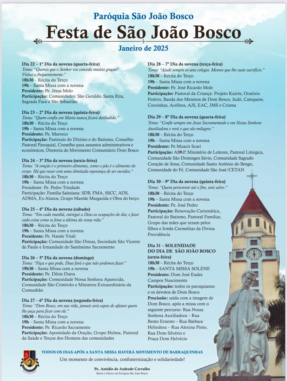 Os Salesianos aqui deixaram e deixam a marca de presença educativa junto aos jovens. Assim como foi na Faculdade Dom Bosco, no seminário e Colégio São João, continuam hoje o seu ministério prestimoso na paróquia.
