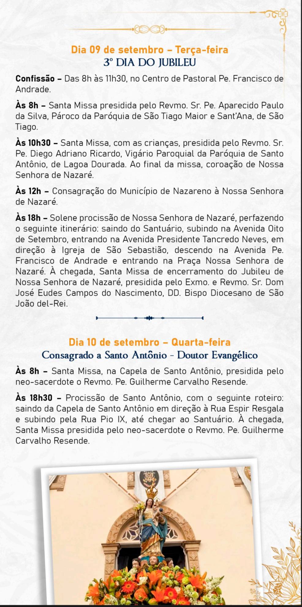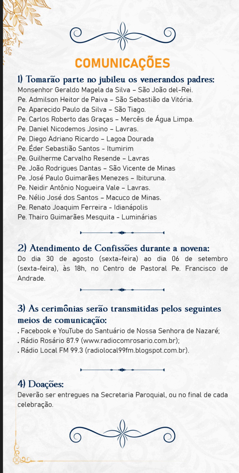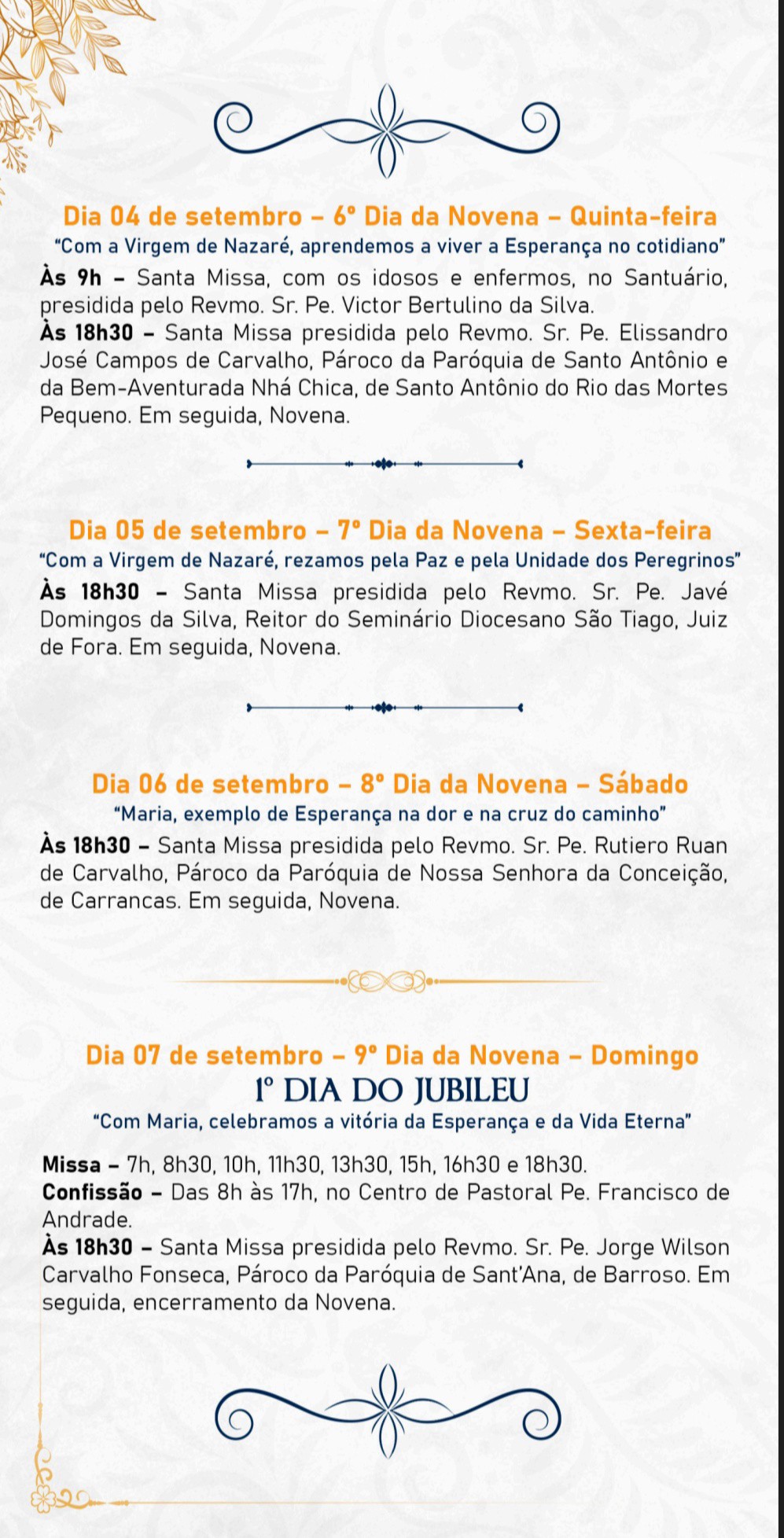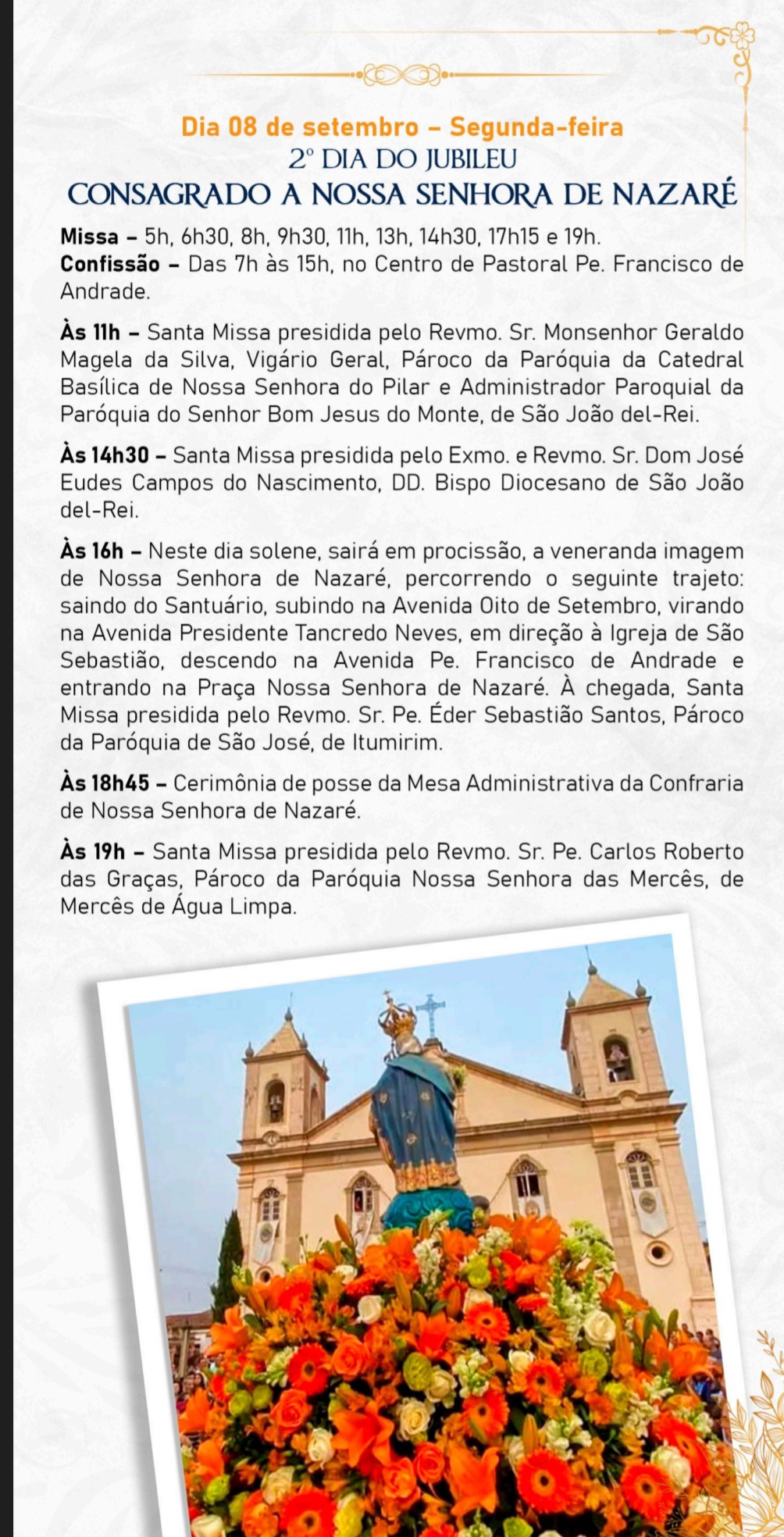 Neste ano de 2025, todos são convidados a vivenciar intensamente o Ano Jubilar “Peregrinos da Esperança”. Sob a proteção do manto de Maria, a Virgem de Nazaré, queremos fortalecer nossa fé e caminhar juntos, cheios de esperança e caridade. O Santuário de Nossa Senhora de Nazaré foi decretado pela Diocese de São João del-Rei como um dos locais onde os fiéis poderão lucrar as indulgências plenárias durante o Ano Jubilar 2025. É uma graça singular que convida a uma profunda renovação espiritual, a uma sincera conversão do coração e a um encontro mais íntimo com al misericórdia divina.