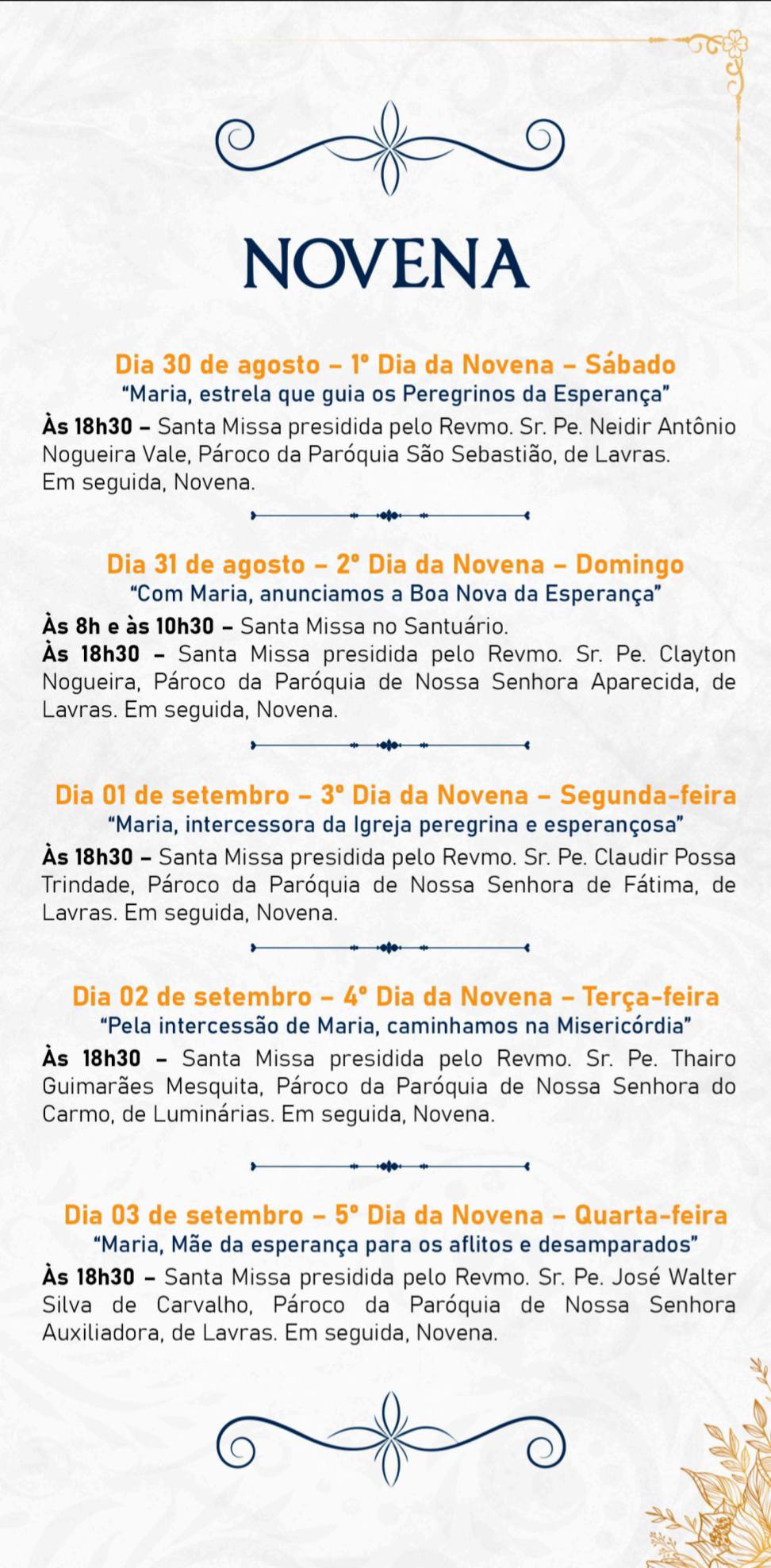 A novena em honra à Santa Virgem é celebrada com piedade e entusiasmo, destacando-se a enorme participação de todo o povo que se reúne com o objetivo de render graças e louvores a Maria. Além disso, a Novena e o Jubileu é um momento de se encontrar como comunidade aos pés da padroeira da paróquia, celebrando a fraternidade e o encontro como caminhos autênticos de conversão, de celebração da fé e de vivência eclesial.