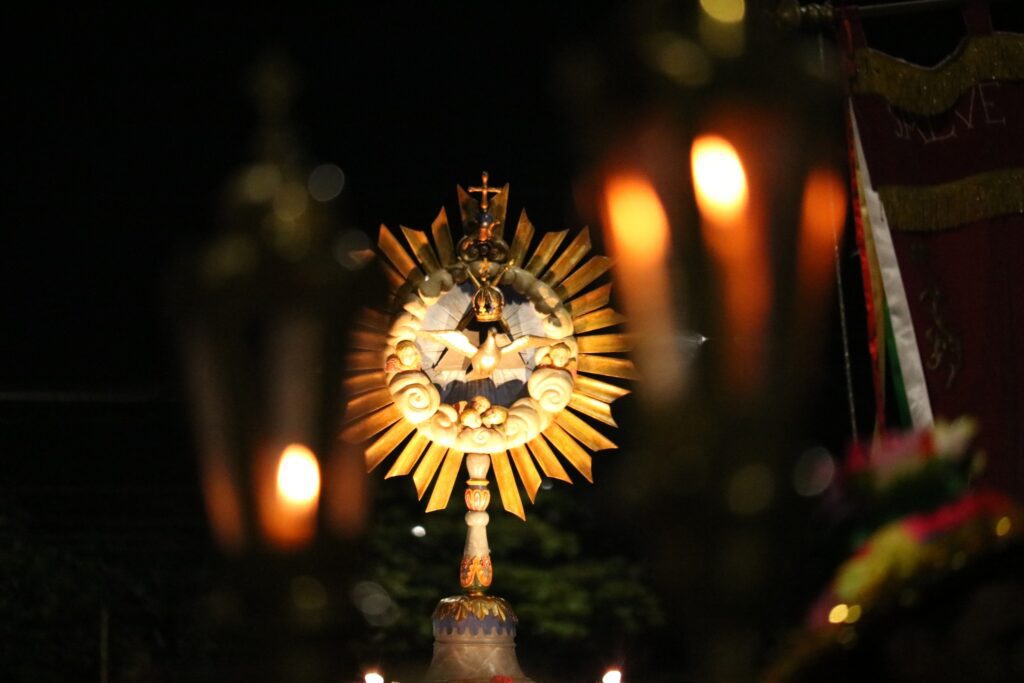 Em seguida, no interior do Santuário, aconteceu a benção do Santíssimo Sacramento. A descida dos mastros e o show com o cantor Chico Lobo movimentaram as festividades na parte externa do nosso Santuário.