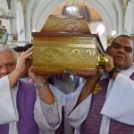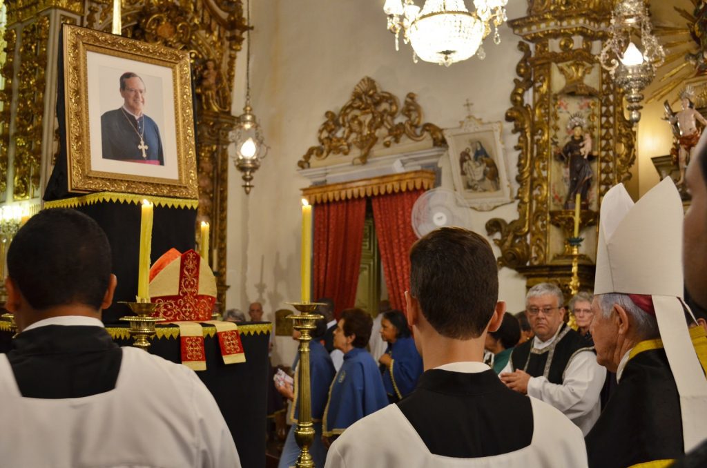 No meio do templo, o Catafalco (uma espécie de andaime) com o quadro do religioso e sua mitra. O momento foi de grande oração e recordação do bispo que faleceu no dia 19 de janeiro, após uma batalha contra um câncer de pâncreas. Em sua homilia, Dom Waldemar falou dos ensinamentos deixados por Dom Célio e a forma que devemos agir a partir de agora.
