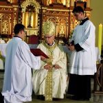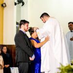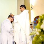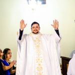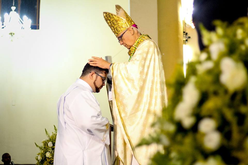 Após a oração, foi investido com uma estola e uma casula, pertencentes ao Sacerdócio Ministerial, em seguida, o bispo unge as mãos com crisma antes de apresentá-lo com o cálice sagrado e a patena que ele vai usar quando presidir à Eucaristia. Depois disso, os dons do pão e do vinho são apresentados pelo povo e dado ao novo padre, que visivelmente emocionado, acolheu com carinho e zelo.