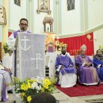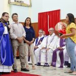 Dando sequência aos tradicionais ritos de posse, o sacerdote recebeu a chave da igreja, juntamente com alguns outros símbolos importantes para a caminhada pastoral como a chave do sacrário, a concha do batismo e a estola roxa, representando o Sacramento da Penitência.
