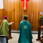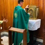 Dando sequencia aos tradicionais ritos de posse, o sacerdote recebeu a chave da igreja, juntamente com alguns outros símbolos importantes para a caminhada como a concha do batismo e a estola roxa, representando o Sacramento da Penitência. Juntamente com o bispo, ele se dirigiu para a Capela do Santíssimo Sacramento onde fez a sua oração.