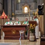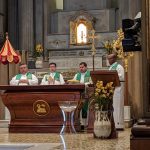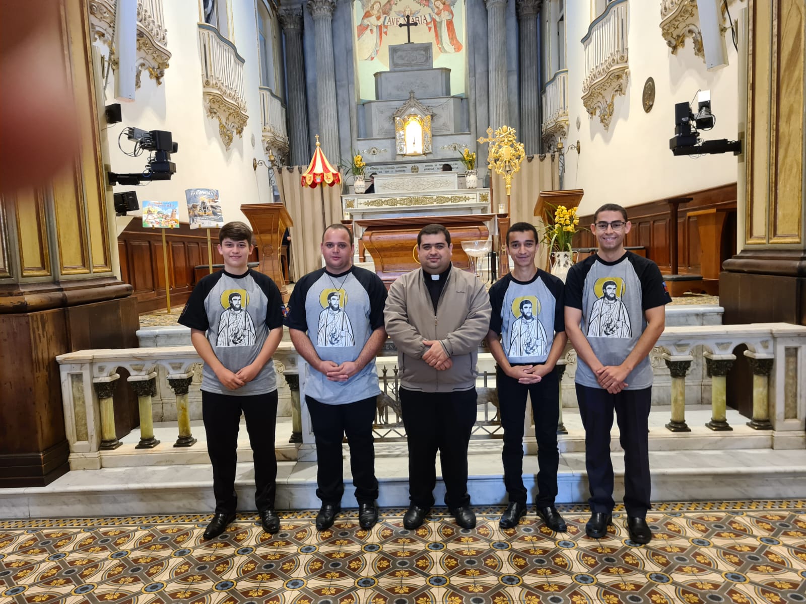 Concluindo a peregrinação do Seminário São Tiago à Aparecida, padres e seminaristas se reuniram na Basílica Histórica de Nossa Senhora Aparecida para a celebração da Santa Missa, na manhã desta terça-feira, 06. A Eucaristia foi presidida pelo reitor da casa de Teologia e Filosofia do Seminário, Padre Javé Domingos.