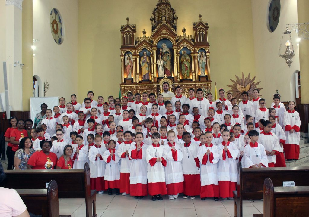 Na manhã de domingo, 24, durante a celebração da Santa Missa na Matriz de Sant’Ana, na cidade de Lavras, foi apresentado à comunidade os novos coroinhas. A investidura dos novatos atraiu o olhar e atenção não só dos pequenos, como seus familiares e demais fiéis, presentes na celebração.