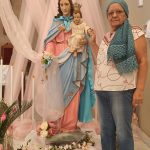 Dona Sueli Maria do Carmo Pereira é devota de Nossa Senhora e sempre participou ativamente da festa na comunidade paroquial. Neste ano, se tratando de câncer, ela participou de forma online, devido a sua imunidade baixa durante o tratamento. Mesmo assim, ela não economizou esforços para estar junto de sua padroeira e fazer suas orações.