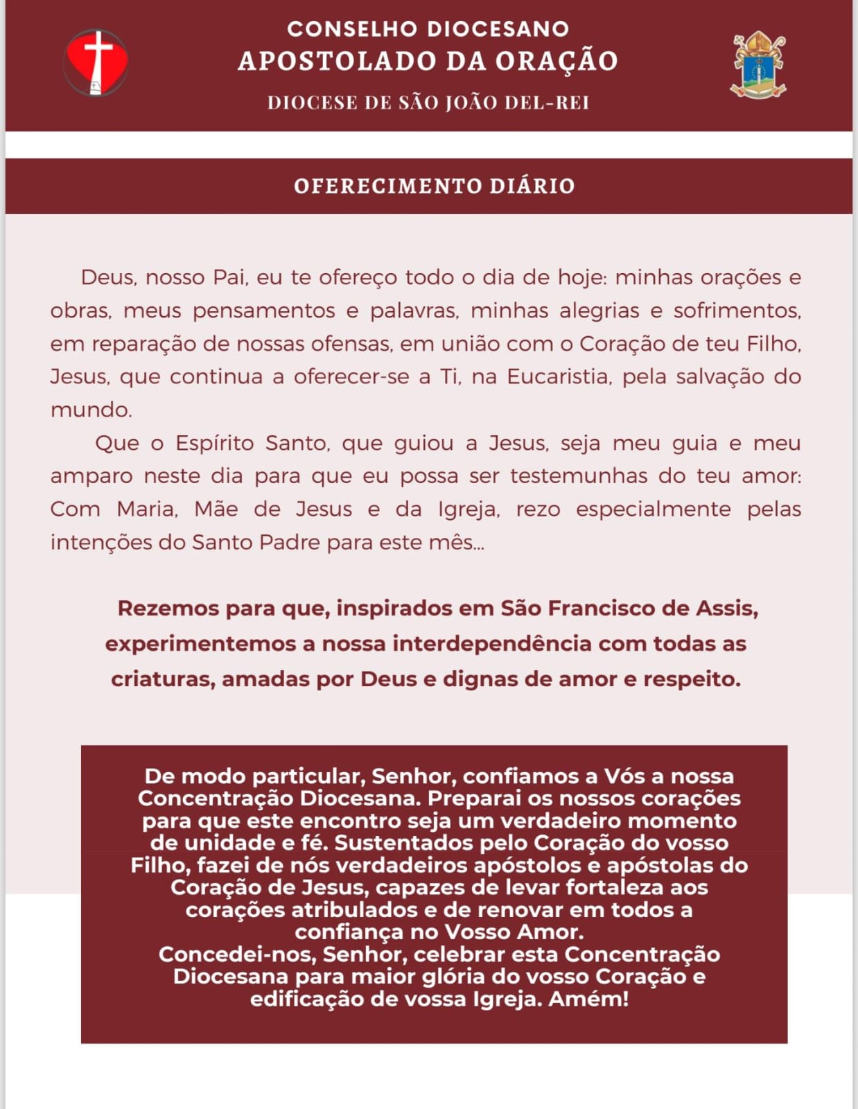 A paróquia Paróquia de São Judas Tadeu, na cidade de Lavras, vai sediar no último sábado do mês de setembro, dia 27, a Concentração Diocesana do Apostolado da Oração. O evento, neste ano, vai ter como tema central a passagem extraída do livro de Isaías, “Apóstolos e Apóstolas do Coração de Jesus – Dizei aos corações conturbados: sede fortes, não temais! (Is 35,4)”.