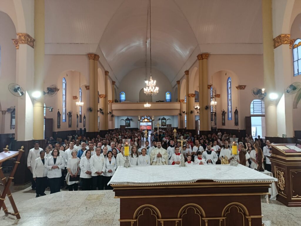 Centenas de fiéis participaram do ato de fé em comunhão com a Proposta do Papa Francisco na celebração do Ano Santo, Jubileu de Esperança. A programação teve início na tarde do último sábado, 15, com concentração em frente a Igreja de Nossa Senhora do Rosário. Em procissão, os peregrinos se dirigiram para a Igreja de Sant’Ana para a celebração da Santa Missa. Além do pároco, Padre Thairo Guimarães Mesquita, a caminhada também contou com a presença do Monsenhor Waldyr Henrique Mancini.