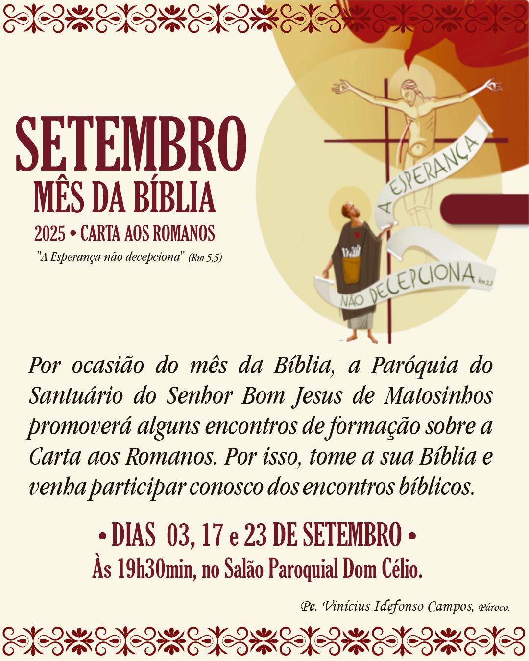 Com o intuito de formar os leigos e leigas, a Igreja Católica no Brasil, propõe que círculos bíblicos aconteçam nas paróquias e comunidades, mas, em especial, no mês da primavera, a Confederação Nacional dos Bispos do Brasil, lançam anualmente uma temática para ser trabalhada. Em 2025, o livro escolhido é a Carta de São Paulo aos Romanos.