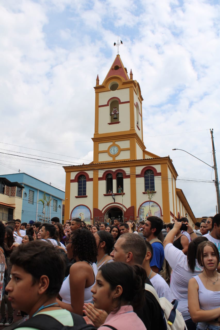 A festa iniciou ainda bem cedo com a acolhida das caravanas na Praça Nossa Senhora de Fátima (Praça da Estalagem). Na concentração eles foram acolhidos pelas equipes e pelo pároco, padre Vinícius Idelfonso Campos. “O DNJ reforçou a certeza do amor de Deus para conosco. Amor manifestado nos tantos sinais de união, dedicação, alegria e fé de nossa Paróquia. Se obstáculos surgiram, muito mais forte falou o amor do Senhor. Os jovens que vieram de todas as regiões de nossa Diocese fizeram transbordar a alegria de Cristo em nossa Paróquia. A fé deles reforçou a nossa. Deram ao nosso povo a certeza de que caminham comprometidos com Jesus. Diante da tempestade e falta de energia elétrica, o DNJ em nossa Paróquia terminou iluminado pela fé no Cristo Ressuscitado que emanou do coração de todos os presentes na Matriz”, pontuou o sacerdote anfitrião.