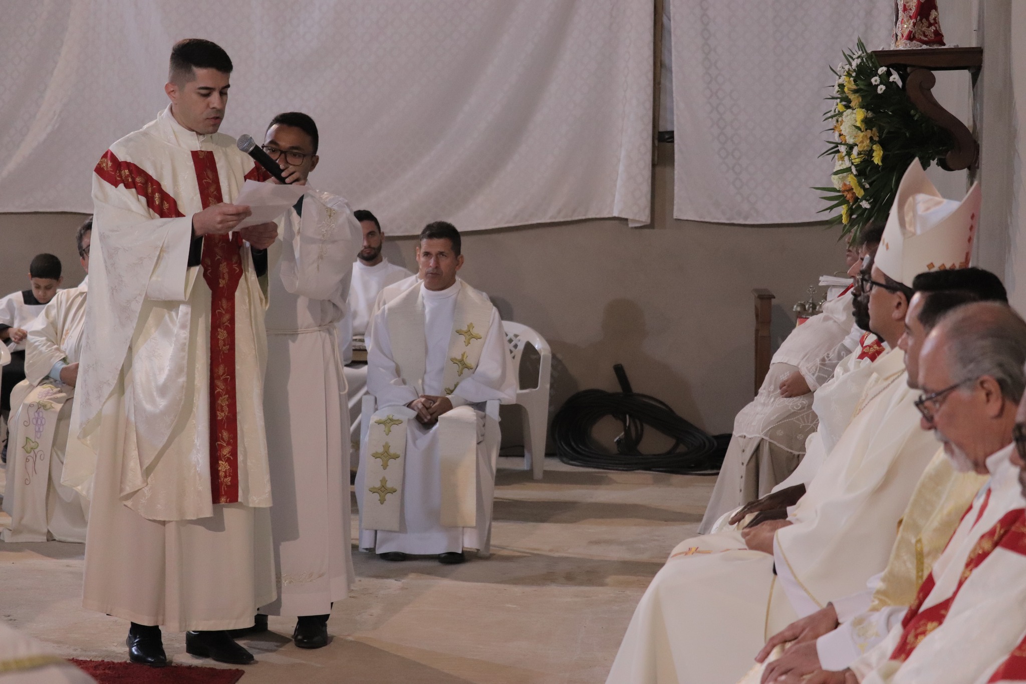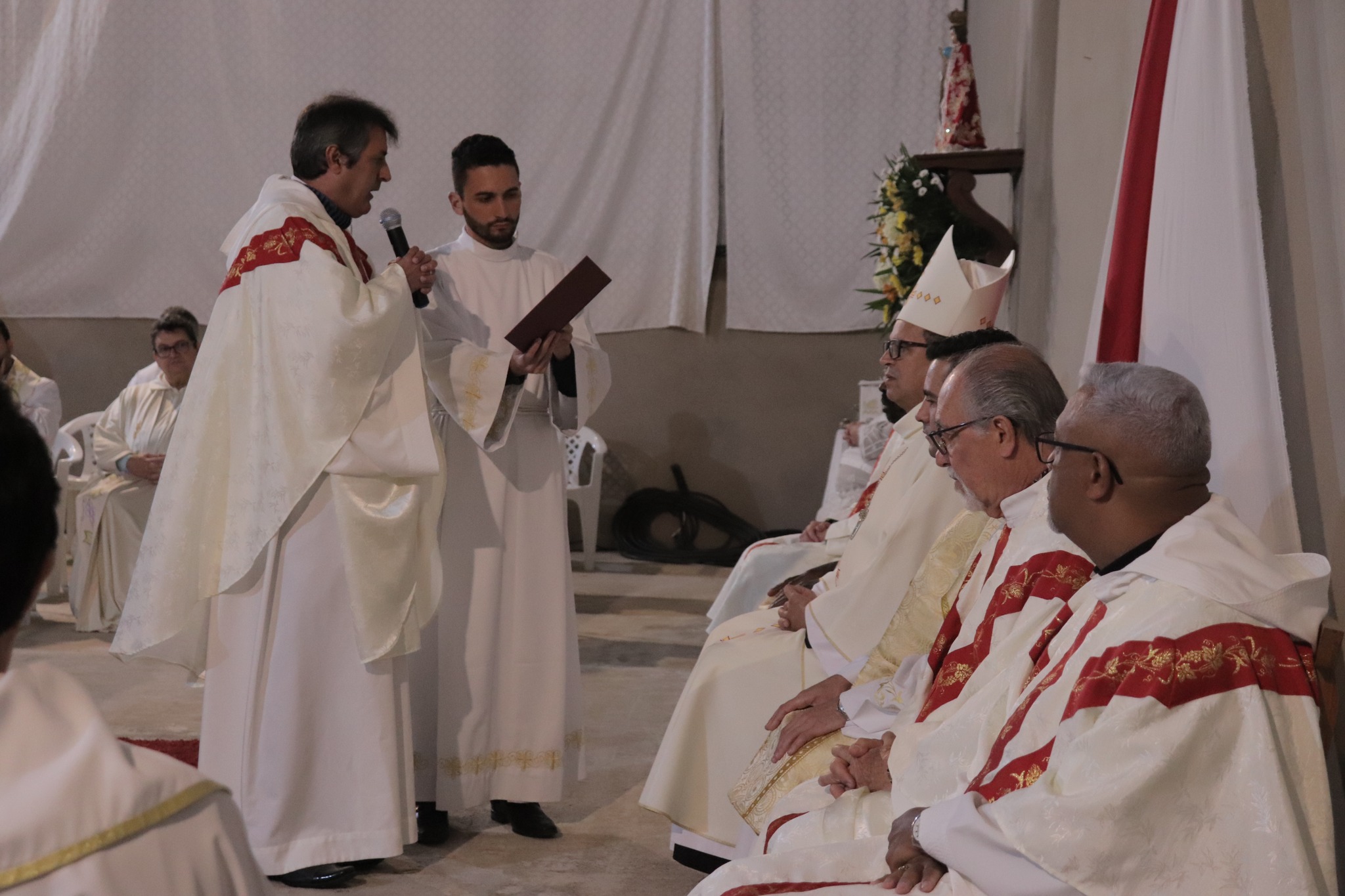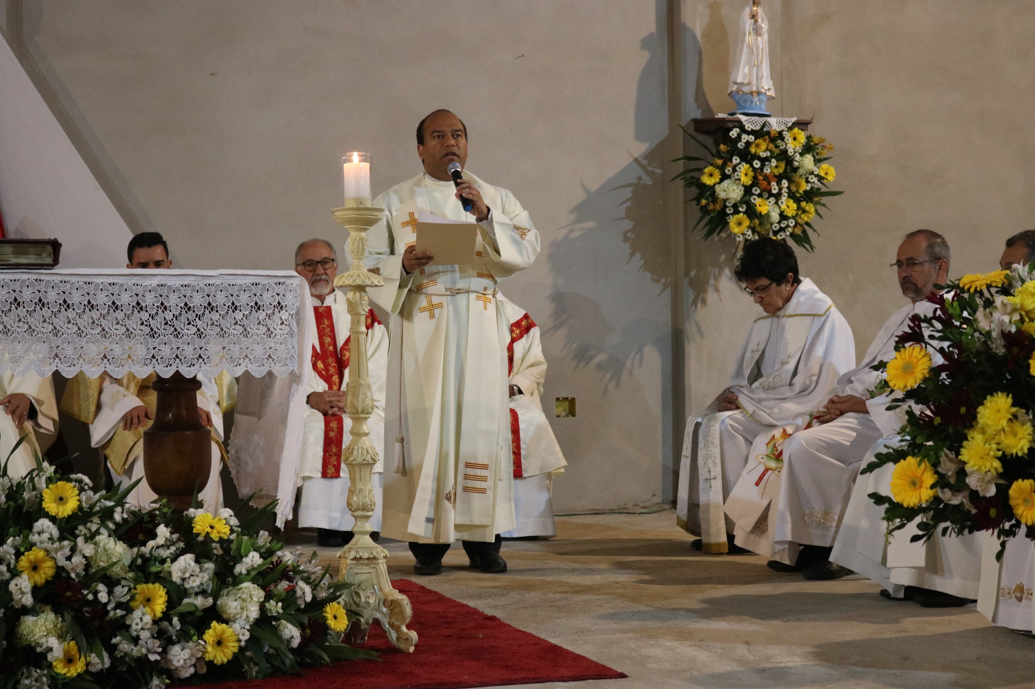 “As paredes dessa nossa igreja matriz ainda estão inacabadas, em construção. Essa é a imagem da comunidade paroquial: uma igreja em construção. Formada por fiéis que não tomados pela fé, de homens e mulheres, que devem se revestir de Jesus e que será bem decorada com a dedicação de todos, padres e fiéis. Vós sóis a construção de Deus. Esse é só o começo de uma história, antiga pela contribuição de muitos, e nova devi aos trabalhos que aqui serão desempenhados”, enfatizou o bispo, durante a celebração.