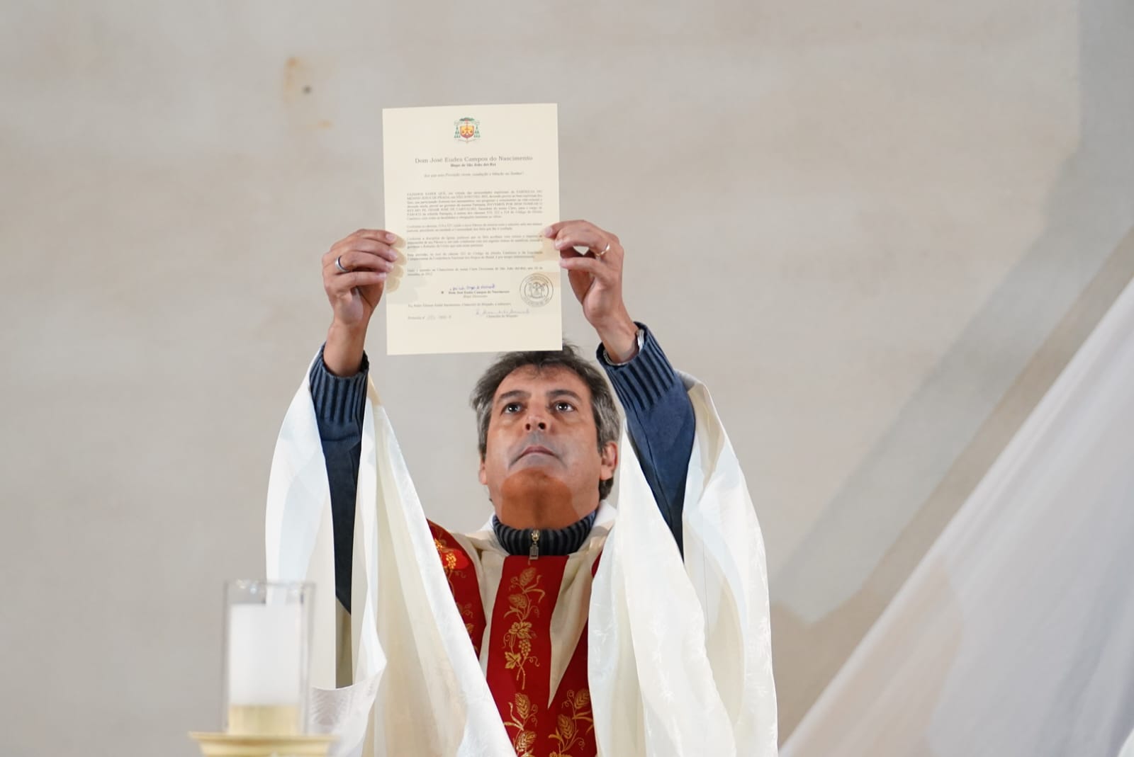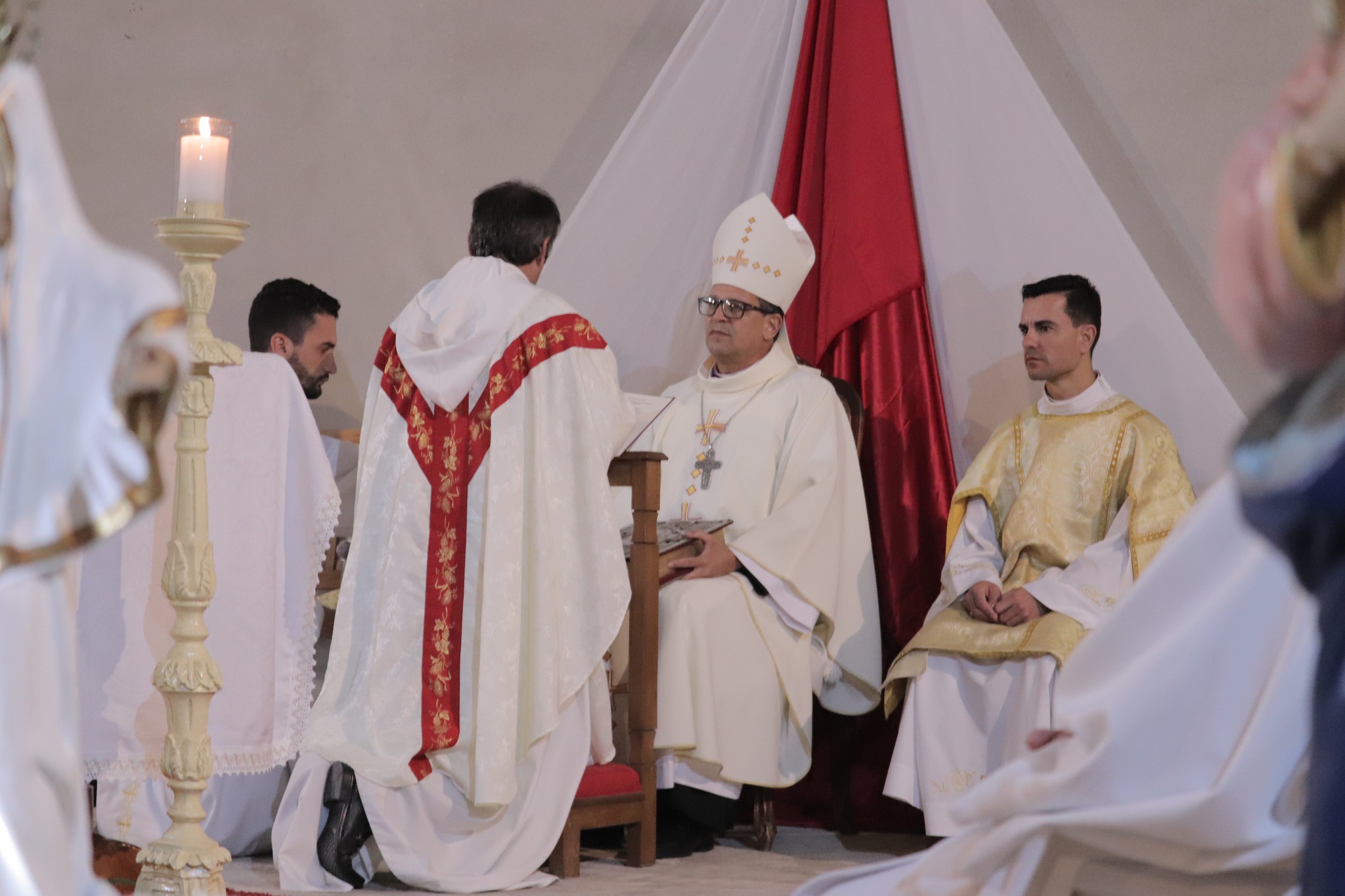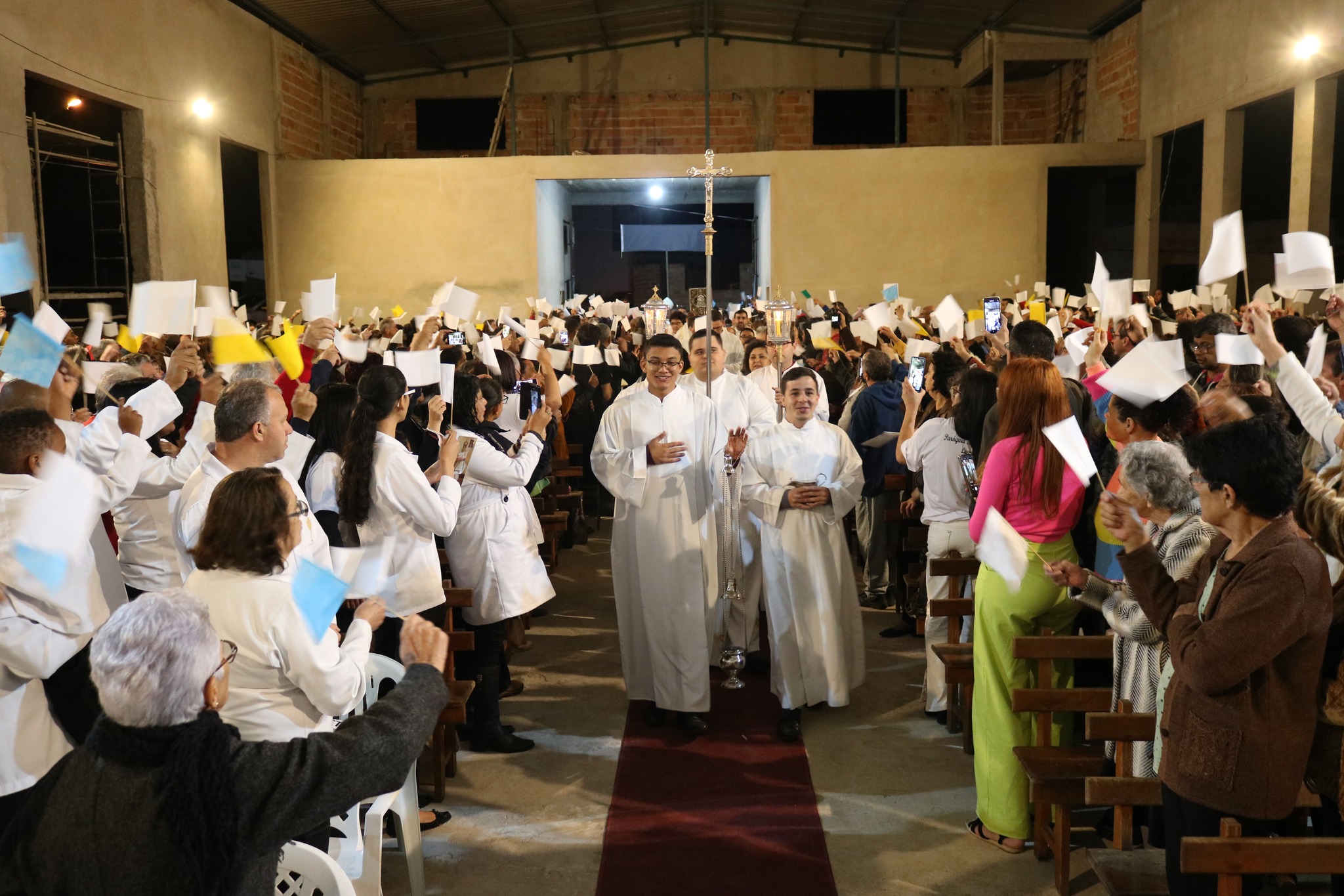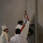“As paredes dessa nossa igreja matriz ainda estão inacabadas, em construção. Essa é a imagem da comunidade paroquial: uma igreja em construção. Formada por fiéis que não tomados pela fé, de homens e mulheres, que devem se revestir de Jesus e que será bem decorada com a dedicação de todos, padres e fiéis. Vós sóis a construção de Deus. Esse é só o começo de uma história, antiga pela contribuição de muitos, e nova devi aos trabalhos que aqui serão desempenhados”, enfatizou o bispo, durante a celebração.