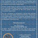Em dezembro do ano passado, o Santo Padre instaurou o ano de São José por ocasião dos 150 anos de proclamação do santo como patrono universal da Igreja. Assim, de forma especial, este ano a paróquia de São José celebra a festa do seu padroeiro.