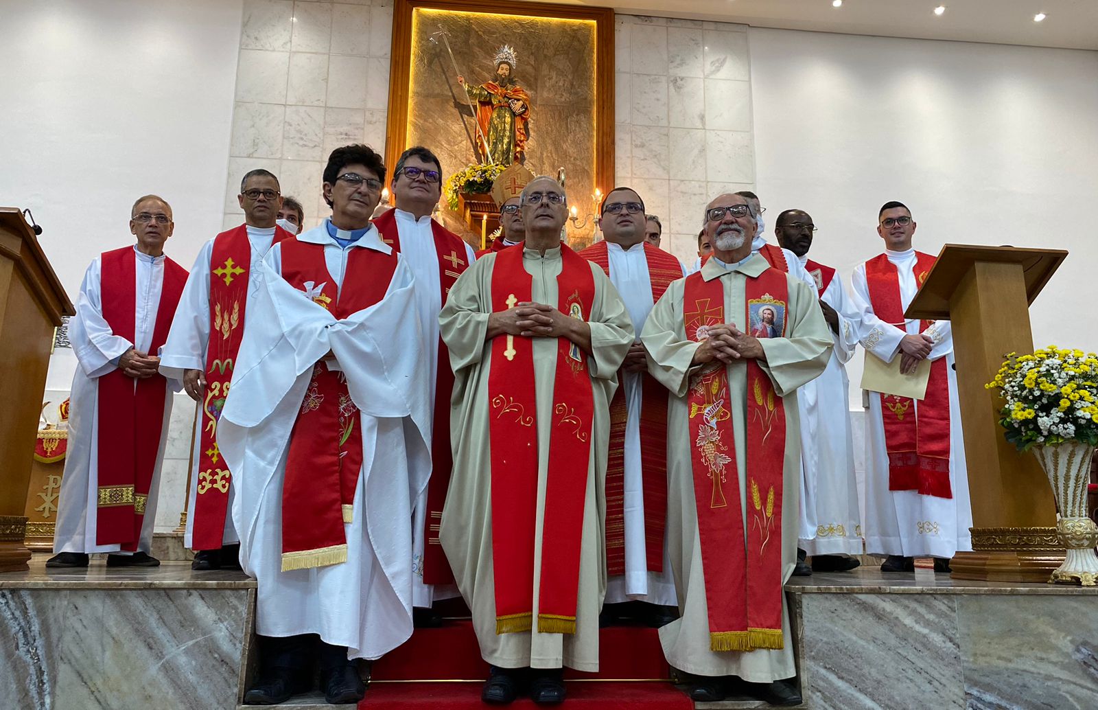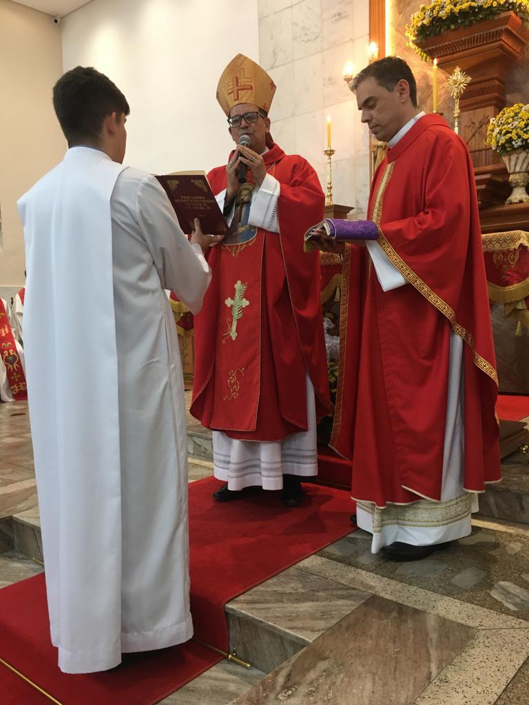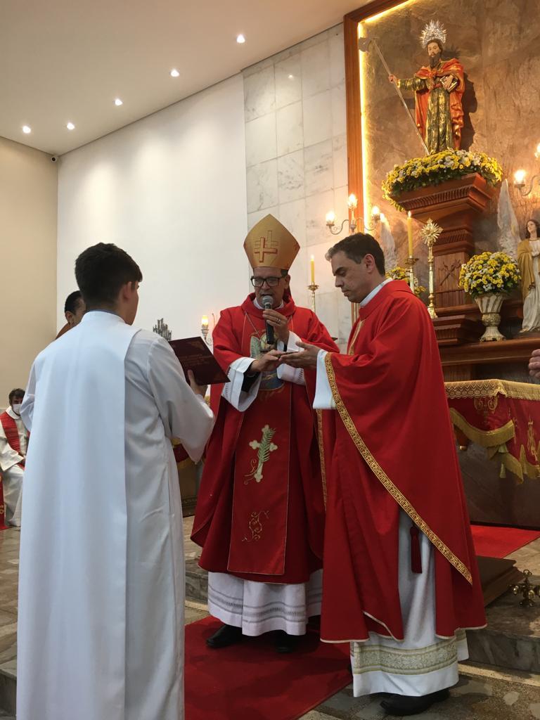 Com o templo repleto de fiéis, familiares e amigos, Padre Plínio foi acolhido pela comunidade. Logo no início da missa –  que contou, ainda, com a presença de diversos padres da região – Padre Lucas Alerson de Souza fez a leitura da provisão canônica. Padre Jorge também fez sua profissão de fé e, tocando o Evangelho, fez o juramento de fidelidade ao bispo e a Igreja.