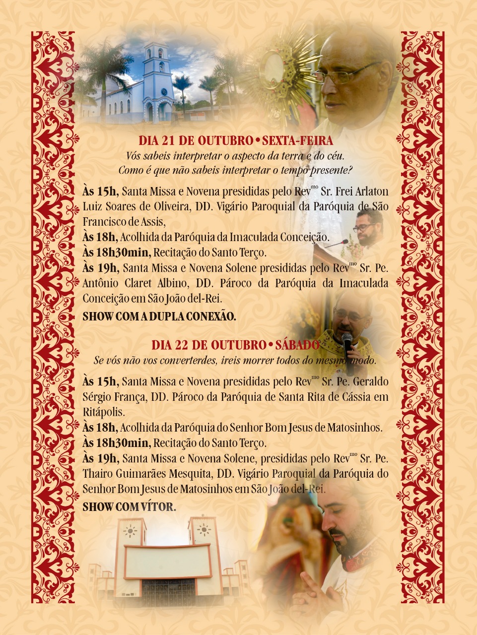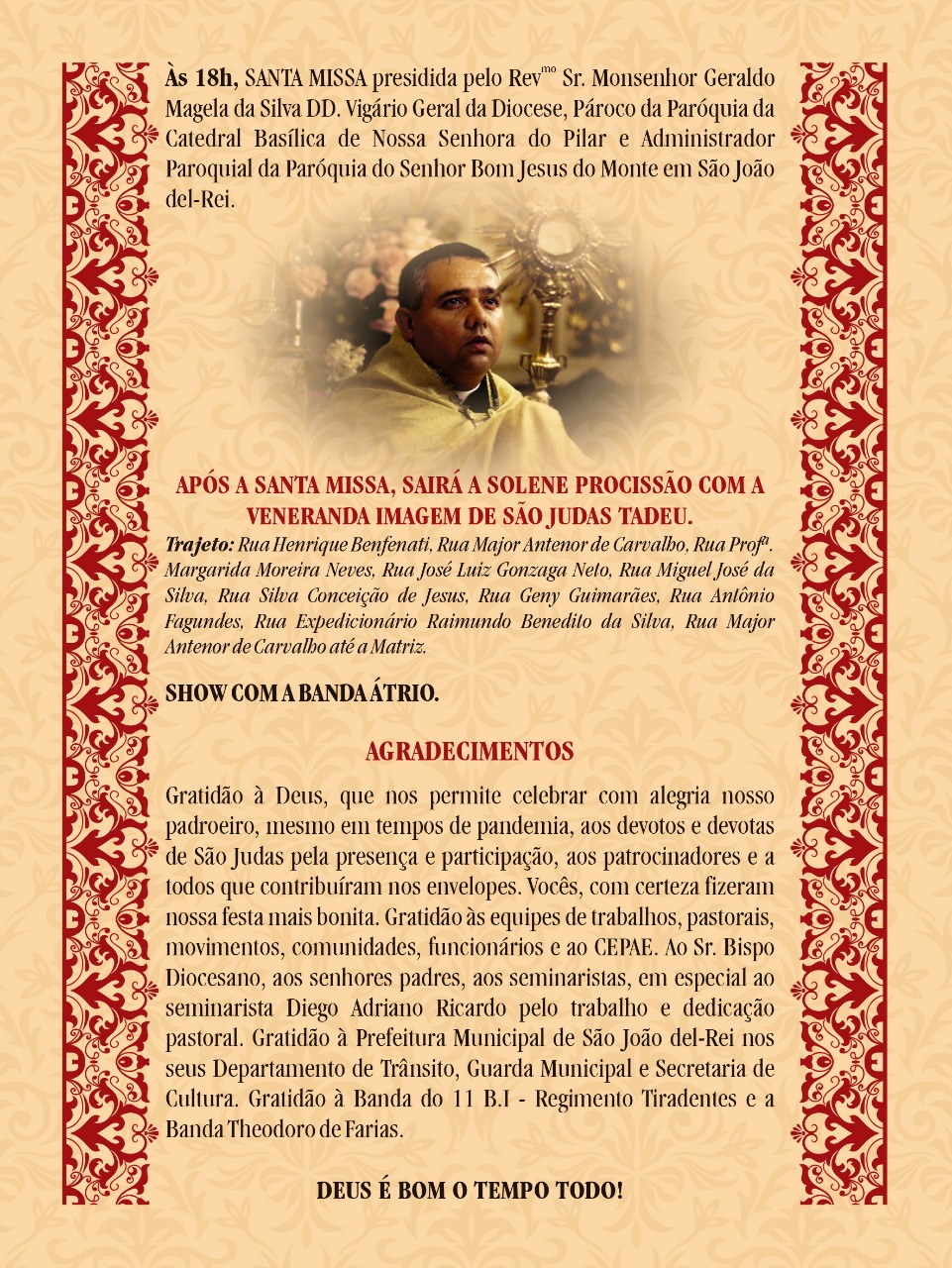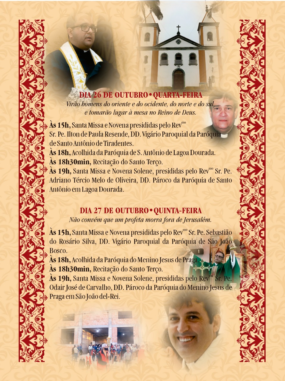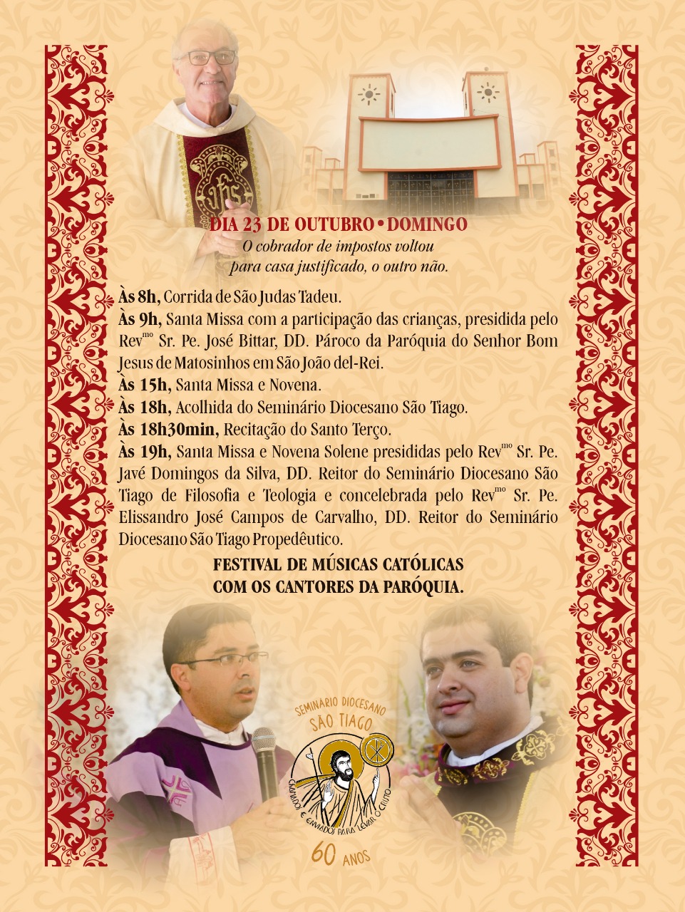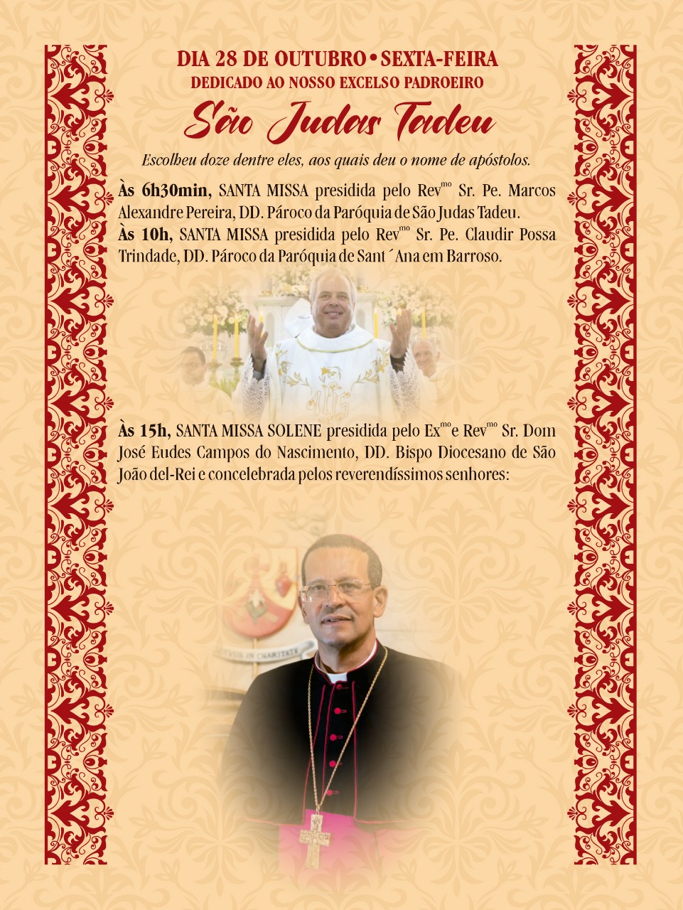 O santo irá receber homenagens em duas paróquias da diocese, uma em São João del-Rei e a outra em Lavras, a partir desta quarta-feira, 19, quando se inicia o novenário preparatório. Veja: