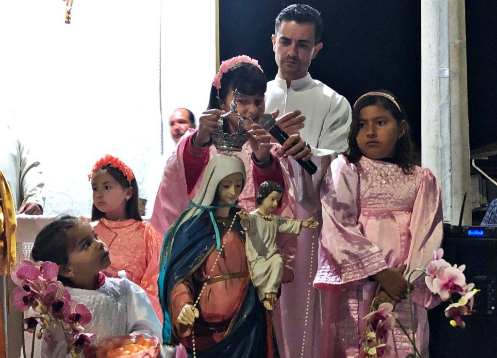 Romilda Aparecida Ferreira faz parte dessa história. Quando criança ela era uma das meninas com asas e roupas acetinadas. Hoje, a professora é responsável por ajudar na preparação das crianças para a coroação. Se antes haviam ensaios na capela, hoje, com a tecnologia, eles acontecem em grupos de whatsapp. Mas a essência, segunda ela, continua a mesma. “Quando eu era criança eu já cantava para a Nossa Senhora e a gente cresce e mantêm esse costume. Todo ano tem essas homenagens e é tão bonito manter isso e incentivas as crianças da comunidade a realizar a coroação. A gente ama Maria e por isso realizamos aso homenagens”.
